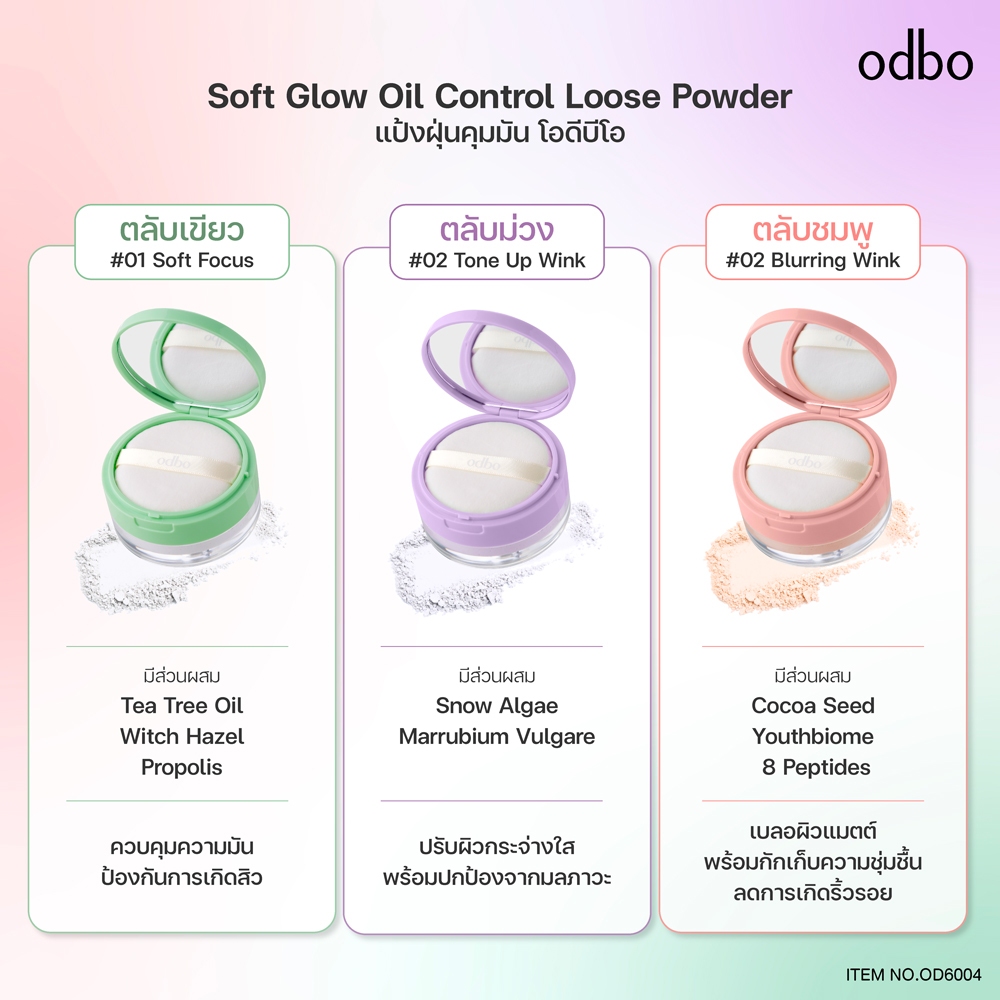 ถูก/แท้/มีไลฟ์ แป้ง ODBO Soft Glow Oil Control Loose Powder แป้งฝุ่น ปกปิด คุมมัน ผิวไบร์ท เบลอผิว ผิวกระจ่างใส