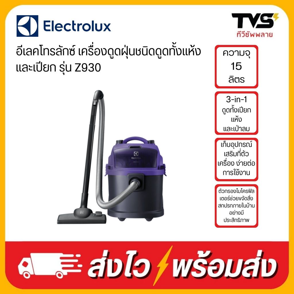 Electrolux เครื่องดูดฝุ่นชนิดดูดทั้งแห้งและเปียก 15 ลิตร รุ่น Z930