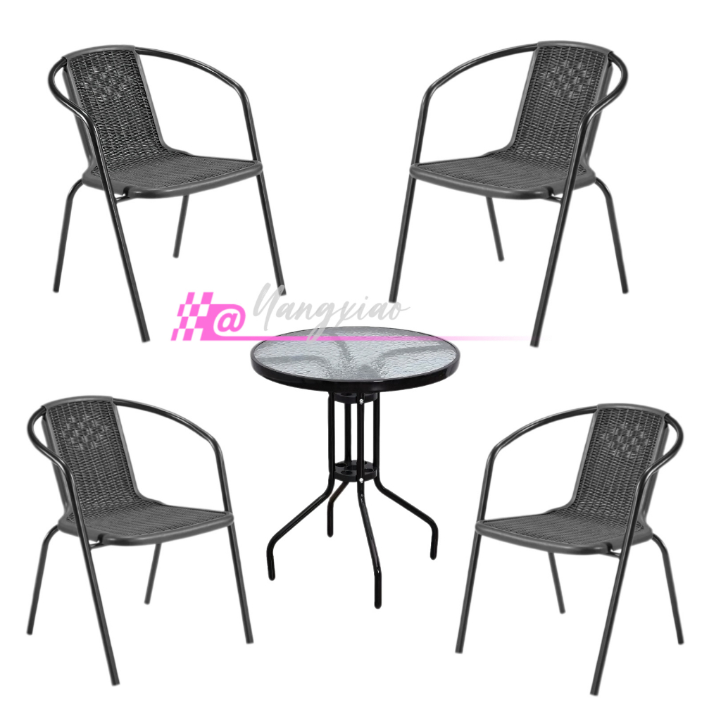 Dogegg🐶มีพร้อมส่ง ชุดโต๊ะเก้าอี้หวายเทียม ท็อปโต๊ะกระจก เฟอร์นิเจอร์กลางแจ้ง