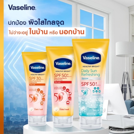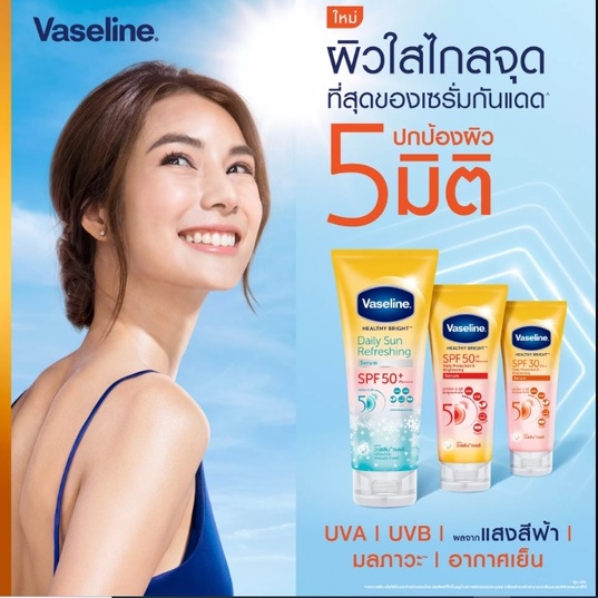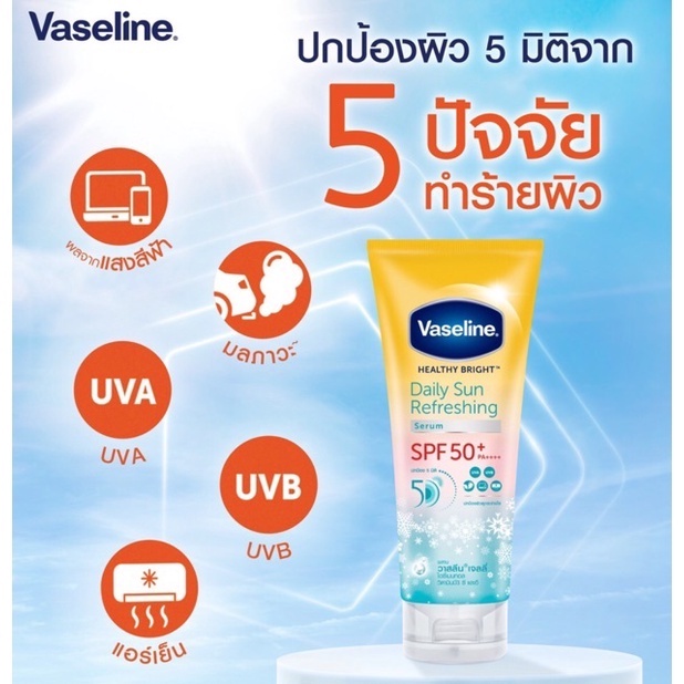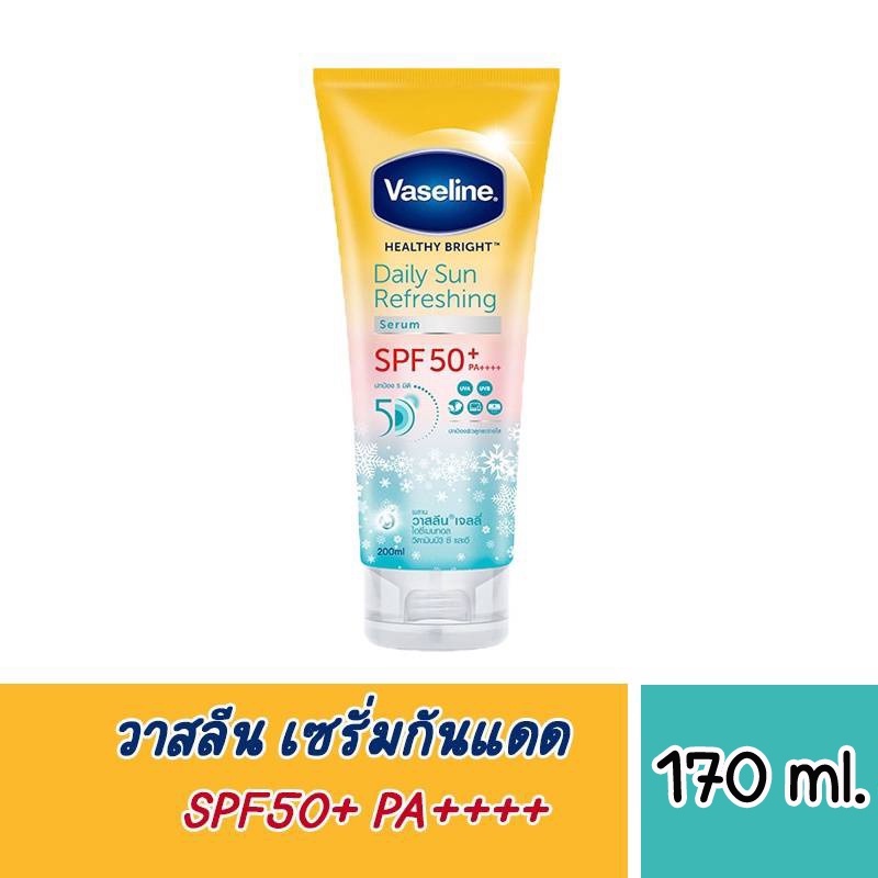 Vaseline Healty Bright Daily Sun วาสลีน เฮลธี้ ไบรท์ เดลี่ซัน รีเฟรชชิ่งเซรั่ม เอสพีเอฟ 50+ พีเอ++++ 170 มล. สูตรเย็น