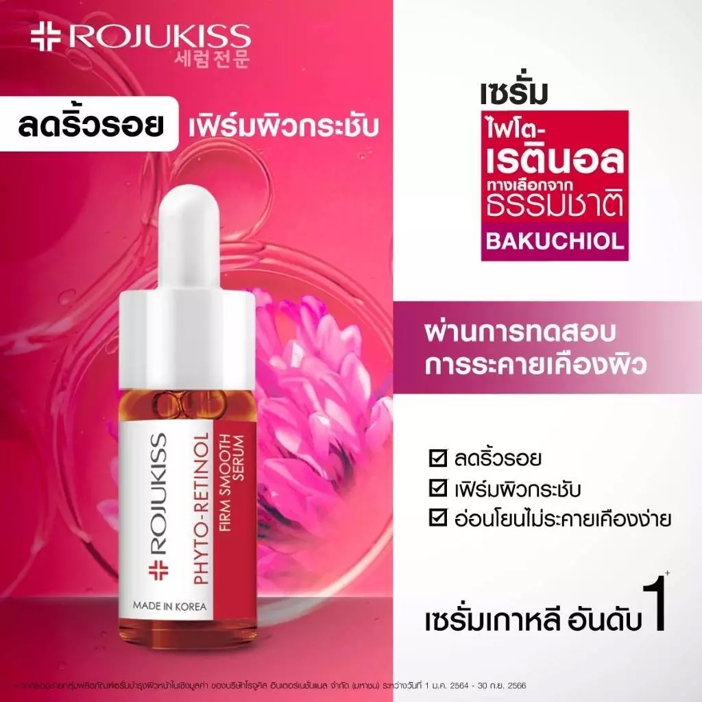 [สูตรใหม่ 15ml] Rojukiss Phyto-Retinol Firm Smooth Serum 15ml โรจูคิส ไฟโต-เรตินอล เฟิร์ม สมูท เซรั่ม 15ml