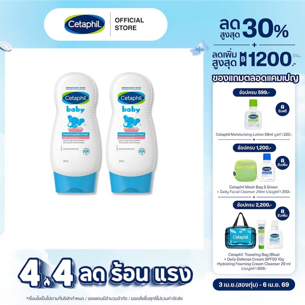 [แพคคู่สุดคุ้ม] เซตาฟิล Cetaphil Baby Moisturising Bath & Wash ครีมอาบน่ำ สูตรอ่อนโยน ให้ความชุ่มชื้นแก่ผิว 230 ml.