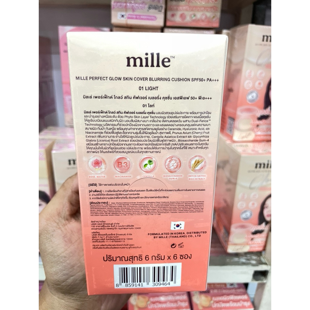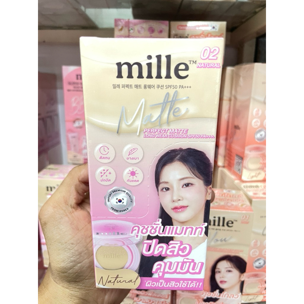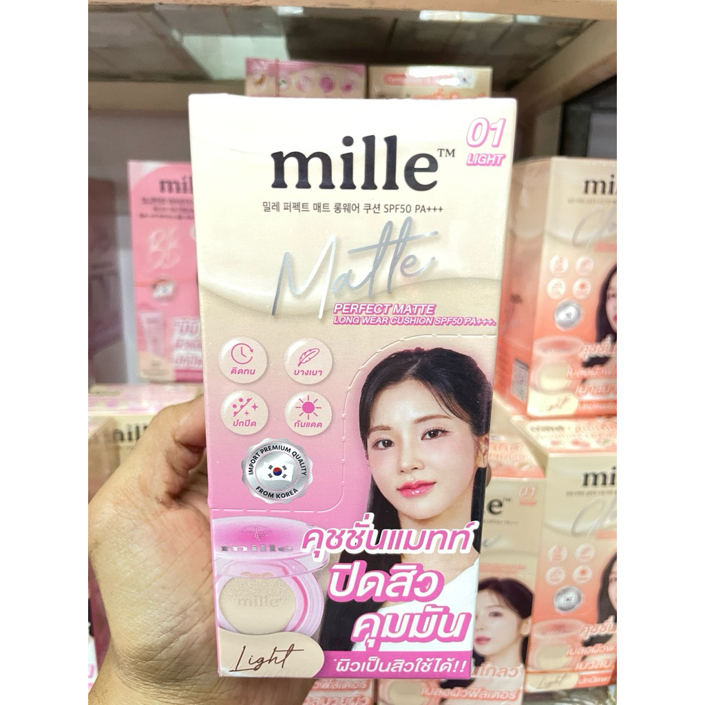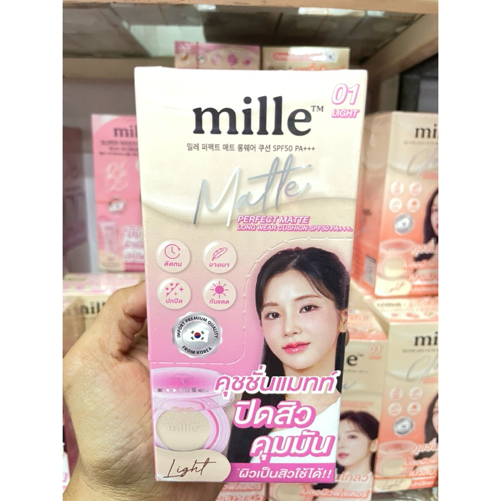 (ยกกล่องx6 ซอง) MILLE คุชชั่นแมทท์ PERFECT MATTE LONGWEAR & คุชชั้น PERFECT โกลด์ สกินคัฟเวอร์ 6g.