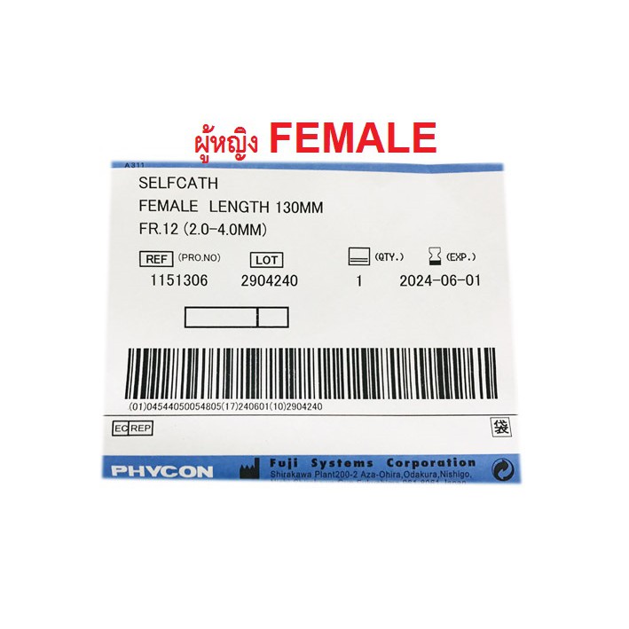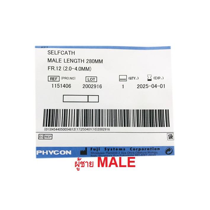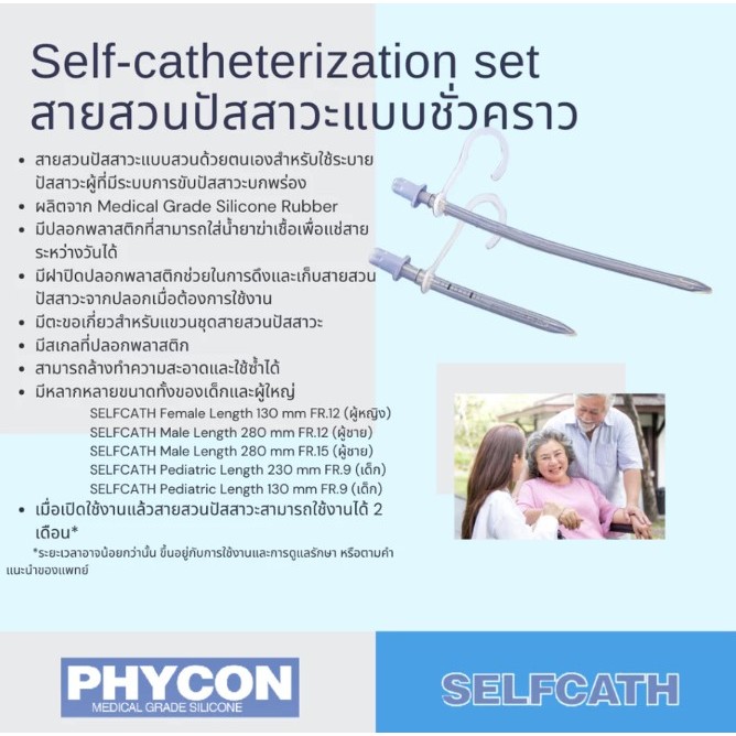 สายสวนปัสสาวะซิลิโคน แบบชั่วคราว ผู้ชาย/ผู้หญิง เบอร์ 280มม. PHYCON SELF CATH SILICONE MALE/FEMALE FR12 280mm