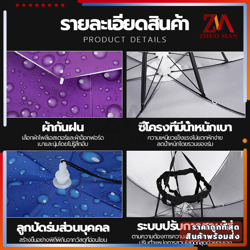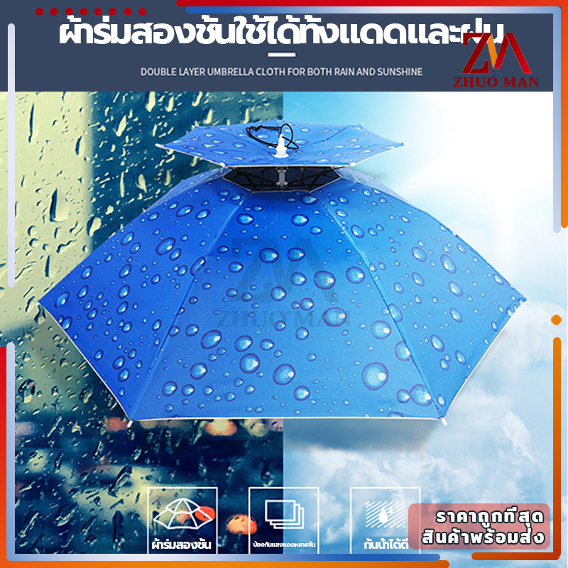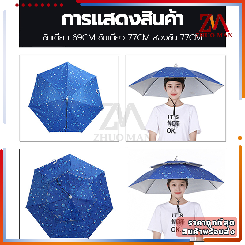 หมวกร่ม ร่มใส่หัว มี 3 ขนาด ร่มตกปลา /น้ำหนักเบา ป้องกันรังสียูวี สามารถพับเก็บได้ แข็งแกร่ง ไม่แตกหักง่าย