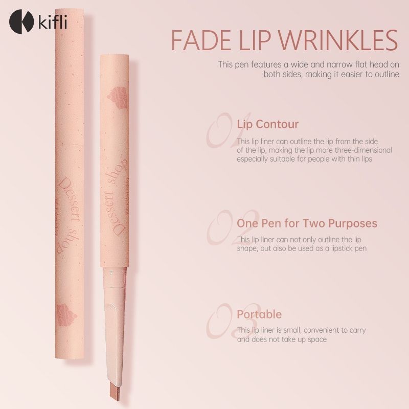 【kifli1 】 ลิปไลเนอร ์ กันน ้ ําแบบหมุนอัตโนมัติติดทนนานไม ่ ซีดจาง Outline Lip Shape ลิปสติกดินสอ-KI
