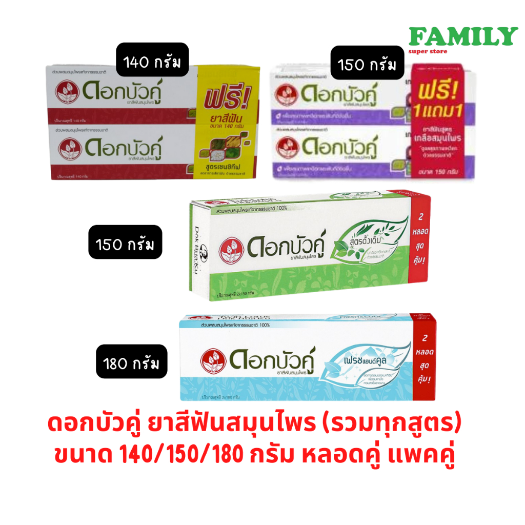 ดอกบัวคู่ ยาสีฟัน รวมทุกสูตร ขนาด 140/150/180 กรัม (แพ็คคู่)