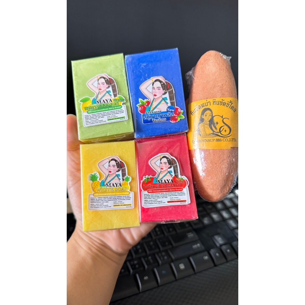 (เซต5ชิ้น) มาญา มายา สบู่ MAYA สบู่มาญา ทำความสะอาดผิวกาย ขนาด 60 กรัม สบู่4สี/หิน1ก้อน