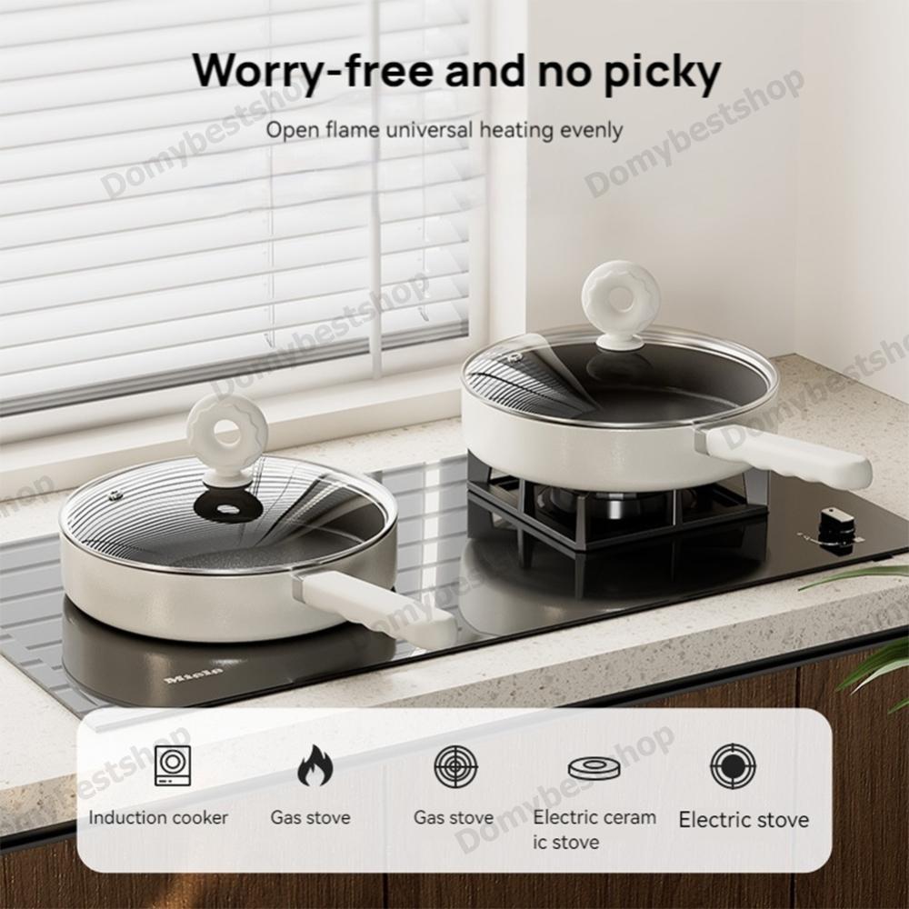 COD หม้อซุป 22 ซม. 2 ชิ้นกระทะพร้อมฝาปิดชุดกระทะกระทะอเนกประสงค์สําหรับเตาทั้งหมด