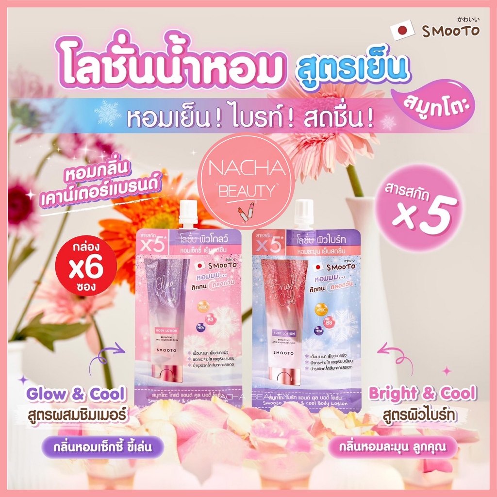 (6ซอง/กล่อง) Smooto สมูทโตะ ไบร์ท / โกลว์ แอนด์ คูล บอดี้ โลชั่น หอมติดทน ตลอดวัน