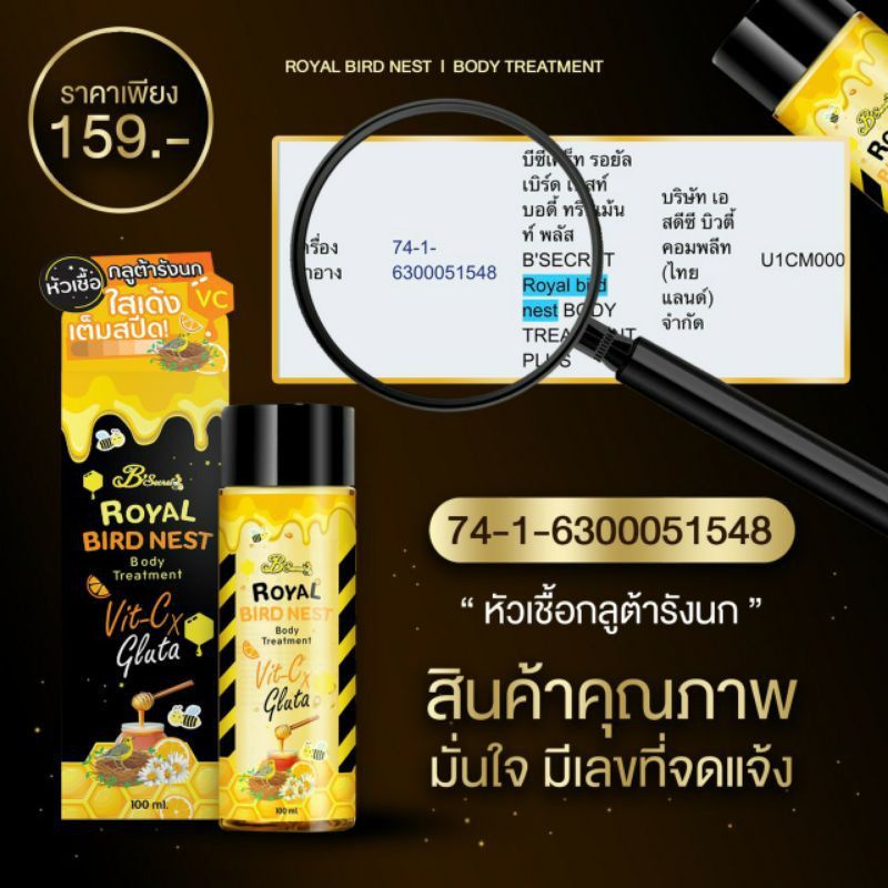 หัวเชื้อกลูต้ารังนก Royal Bird Nest เซรั่มรังนก เซรั่มรังนกทาตัว รอยัล เบิร์ด เนสท์