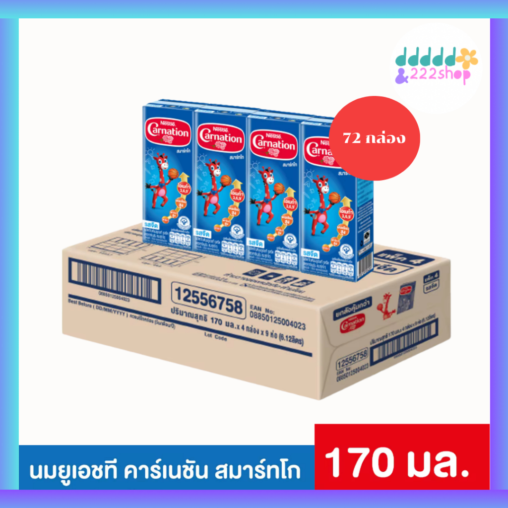 (2ลัง) นมยูเอชที คาร์เนชัน นมuUHT CARNATION สมาร์ท โก รสจืด 170 มล. (รวม72กล่อง)