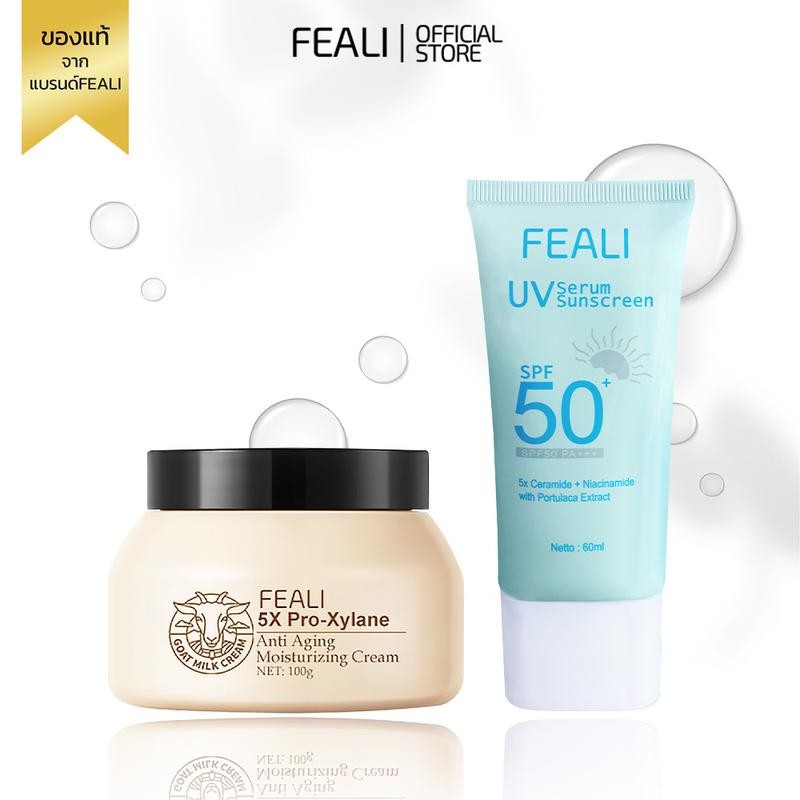 (โปรโมชั่นสุดคุ้ม) FEALI เซ็ตกันแดดและมอยส์เจอร์ไรเซอร์ มอยส์นมแพะ+ครีมกันแดดSPF50 PA++++ ช่วยเพิ่มความชุ่มชื้น ผิวเรียบ