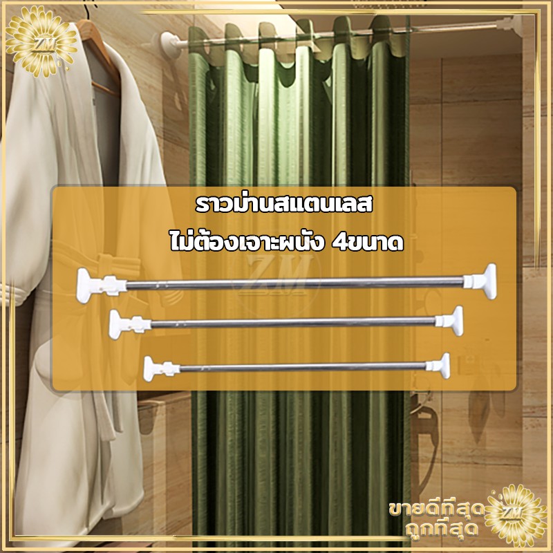 ราวม่านสแตนเลส ราวสเตนเลส ปรับขนาดได้ ไม่ต้องเจาะผนัง 4ขนาด สเตนเลสเกรด 304 คุณภาพดี ไม่เป็นสนิม