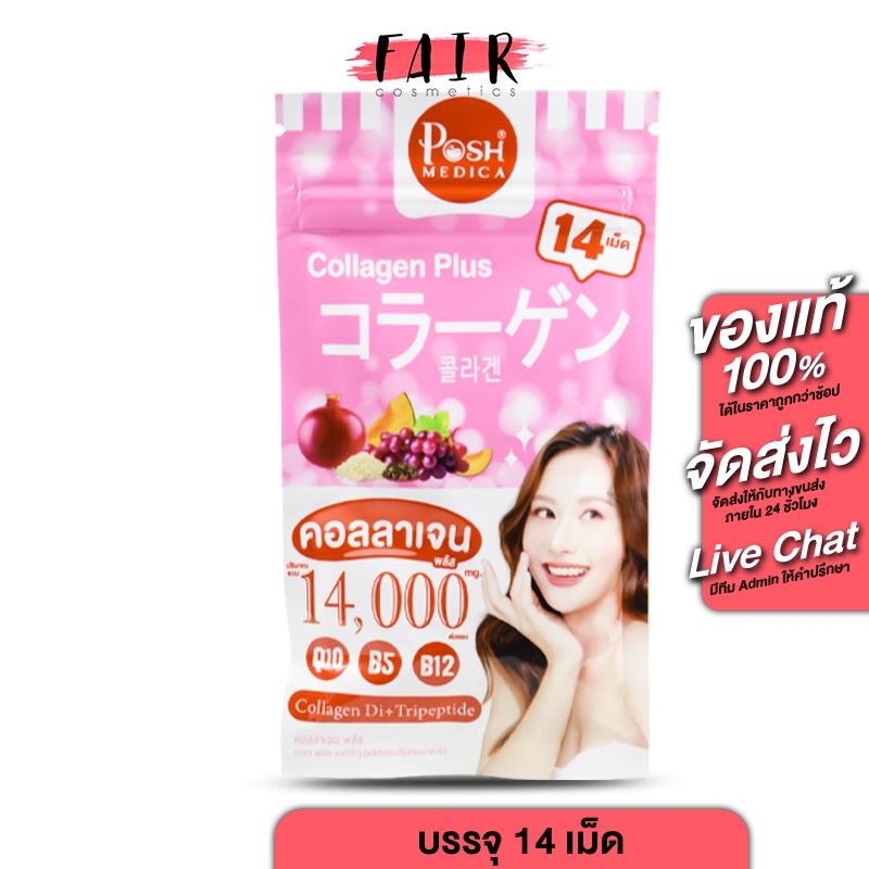 Posh Medica Collagen Plus/Gluta Max Plus พอช เมดิก้า คอลลาเจน พลัส/กลูต้า แม็กซ์ พลัส [14 เม็ด] คอลลาเจนเม็ด กลูต้าเม็ด