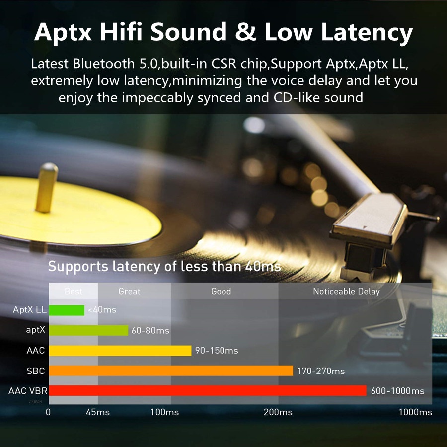 80M Bluetooth 5.0 Transmitter Receiver Aptx LL HD Low Latency Wireless Audio Adapter 3.5mm AUX RCA Jack for PC TV Headphones