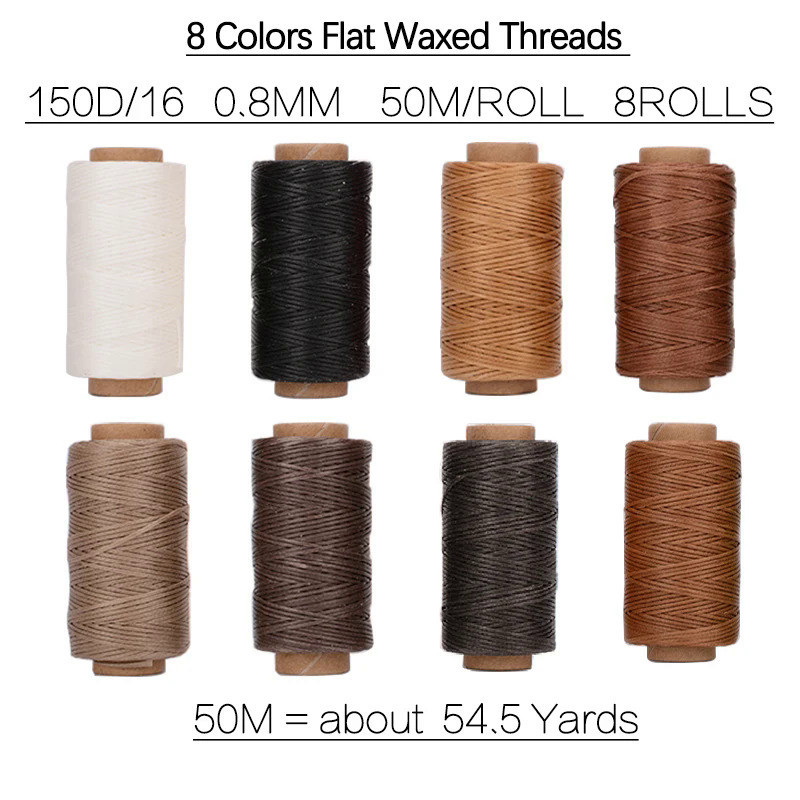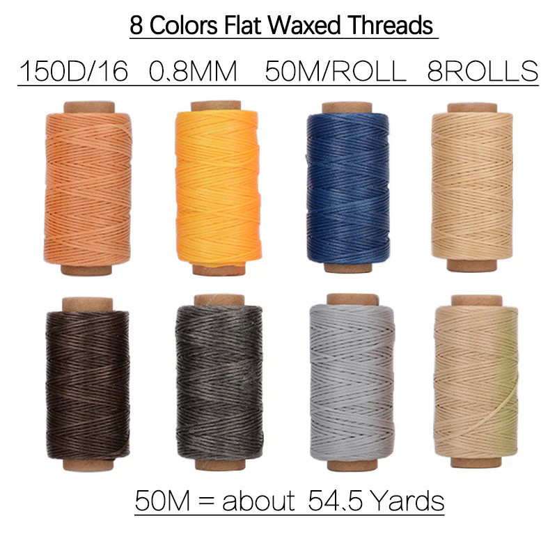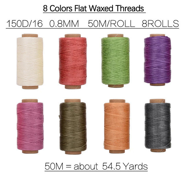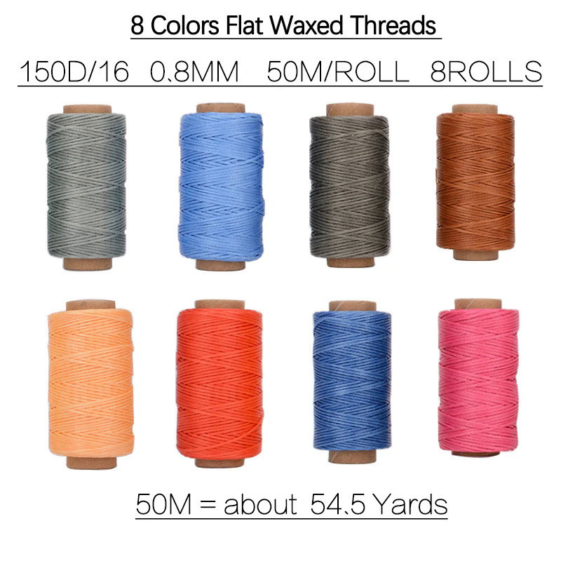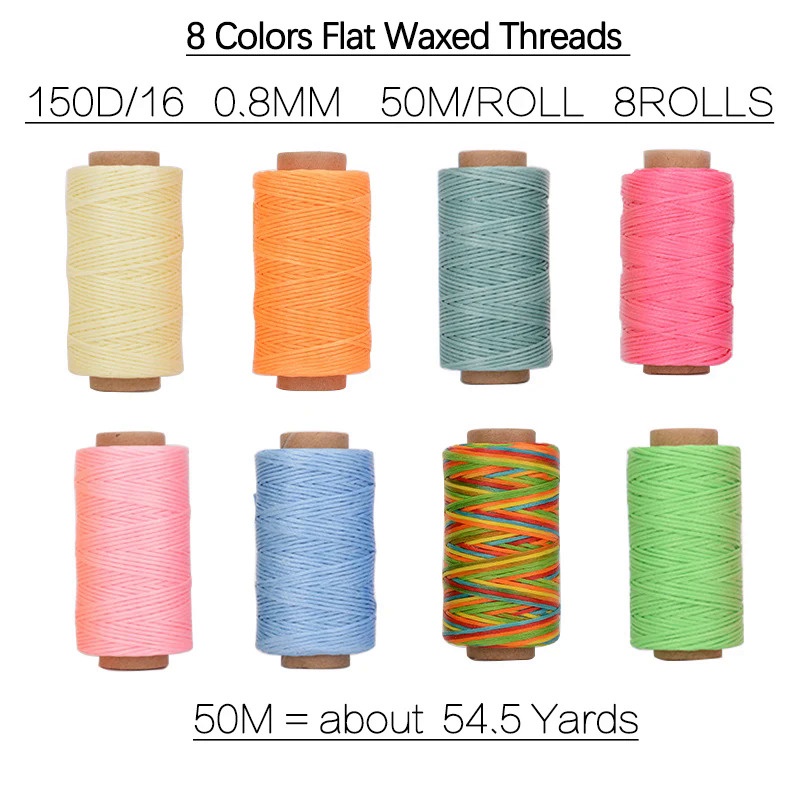 8pcs Set of 50m Leather Waxed Thread Polyester Cord Wax Coated Strings Braided DIY Leather Craft Sewing Accessories