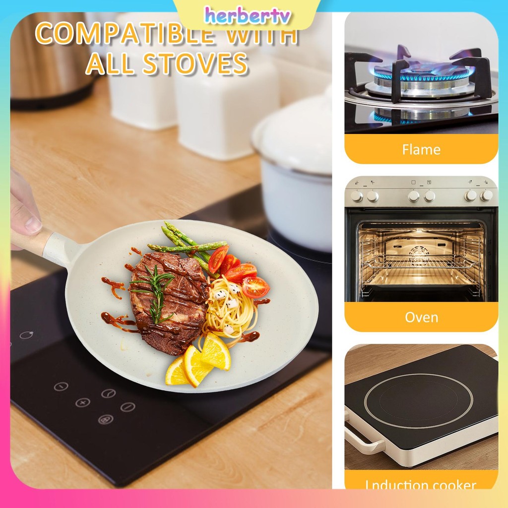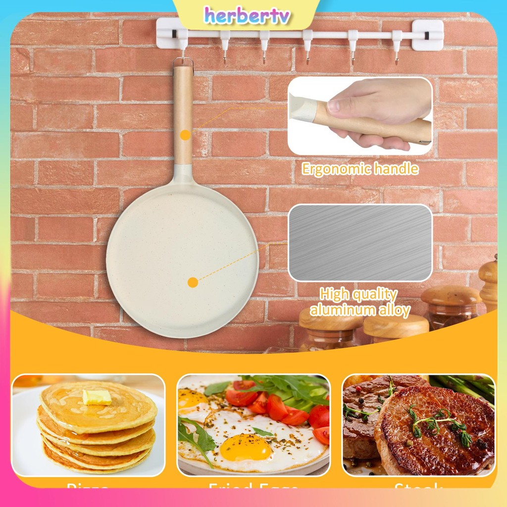 9.2in กระทะเครปด้ามไม้ Nonstick Crepe Maker Pan สําหรับเตาน้ําหนักเบาแพนเค้กกระทะแบนความร้อนได้ดี SHOPSBC1880