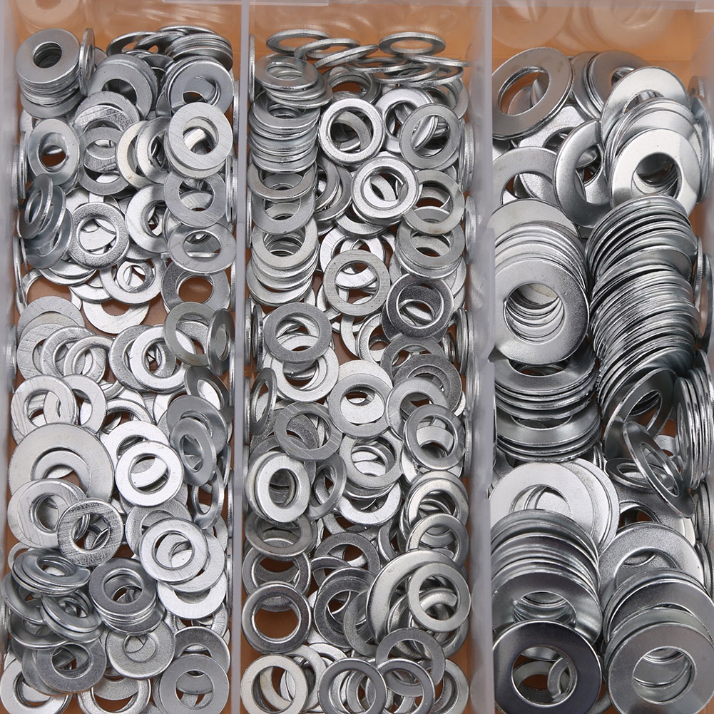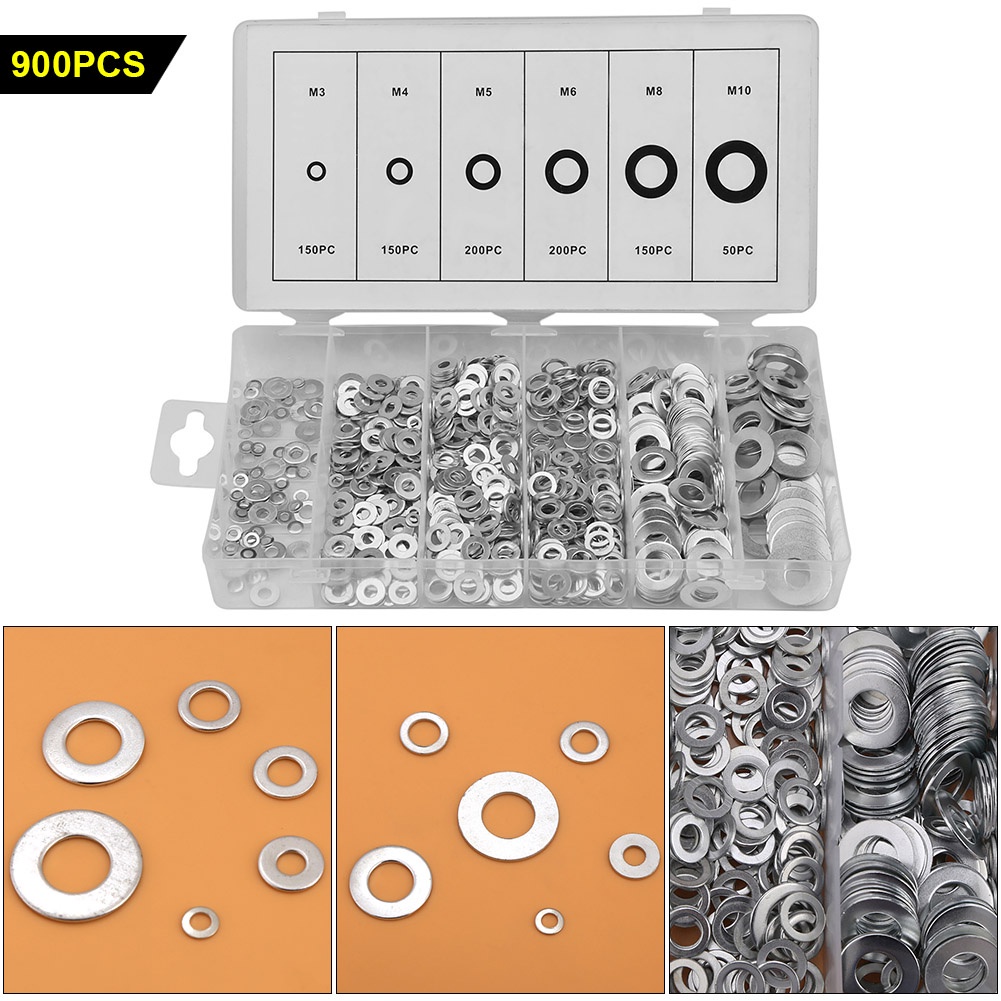 900pcs M3-M10 Washer A3 Steel Flat Plain Washers Assortment Kit with Box