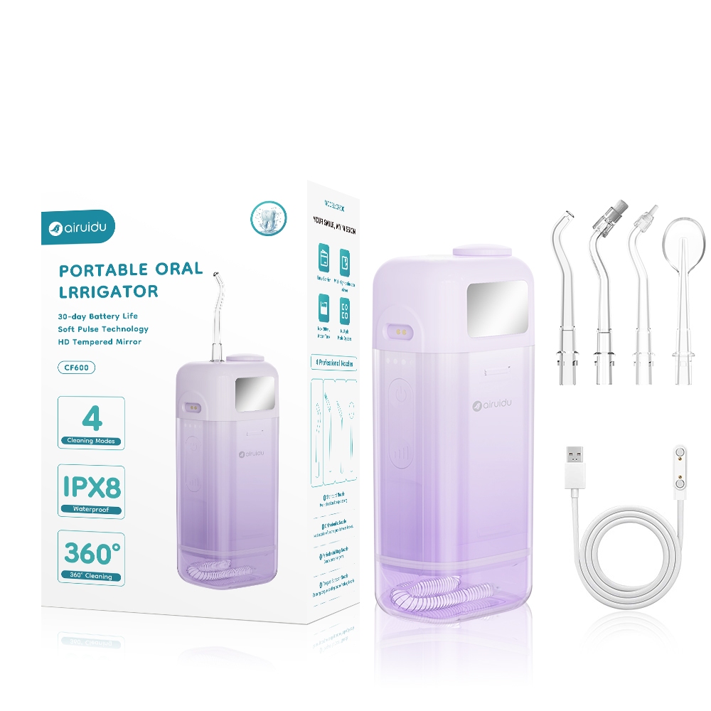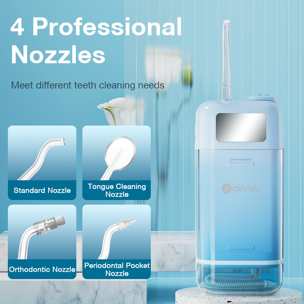 Airuidu Water Flosser (3โหมด+4หัวฉีด) ฟัน Irrigator ไหมขัดฟันพลังน้ำ น้ำ ทำความสะอาดฟัน IPX7 กันน้ำ for gift
