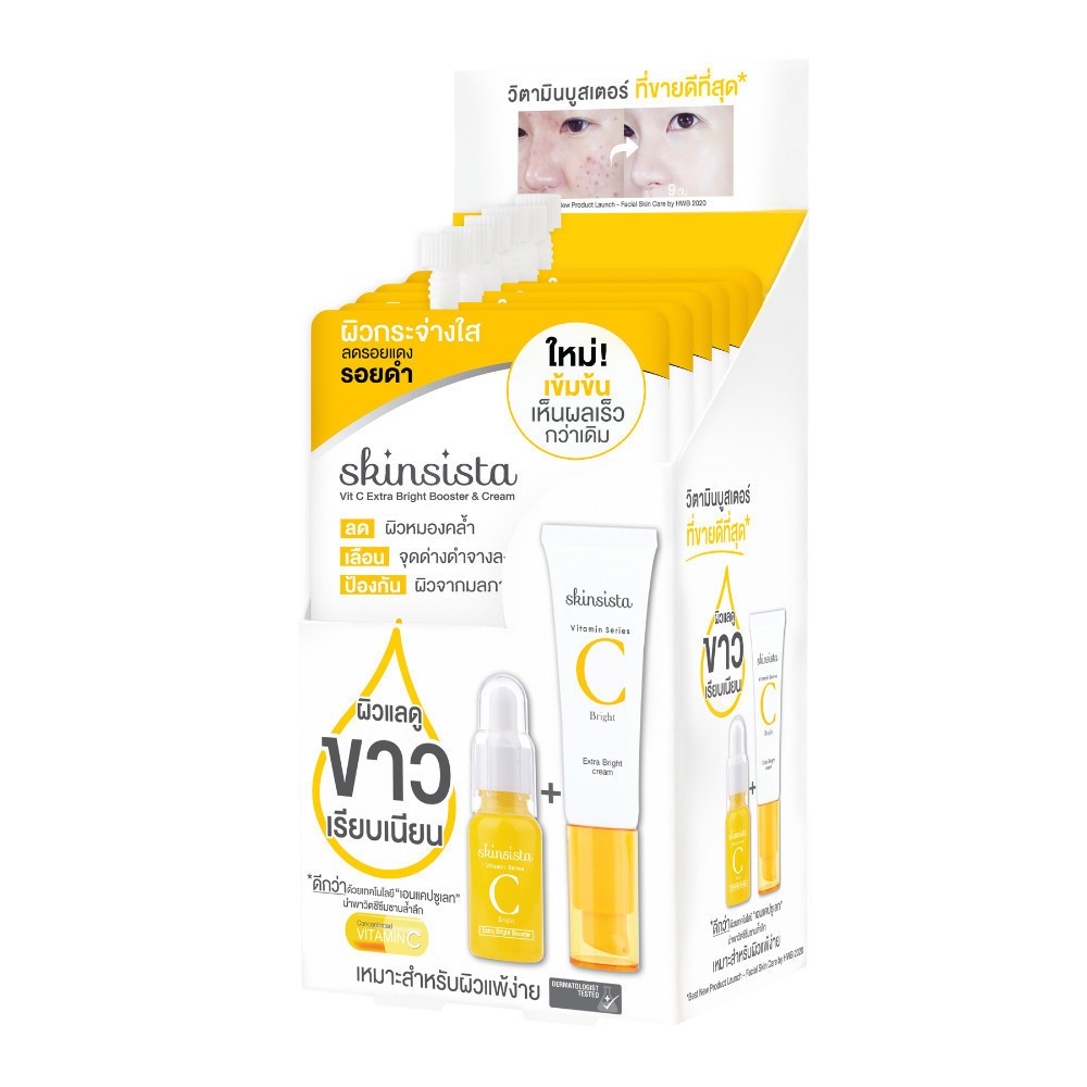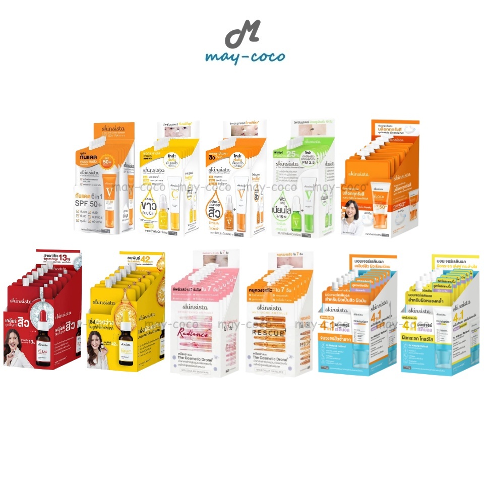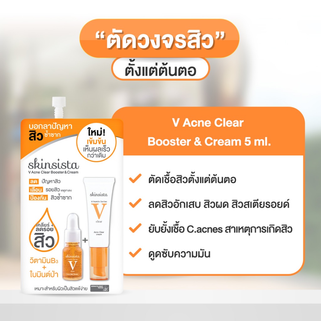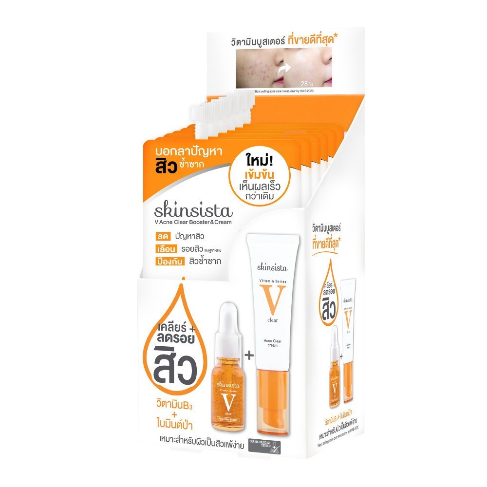 ถูก/แท้/มีไลฟ์ (ยกกล่อง 6 ซอง) Skinsista V Block V Acne Clear Vit C Booster&Cream Ampoule&Moisturizer กันแดด มอยส์