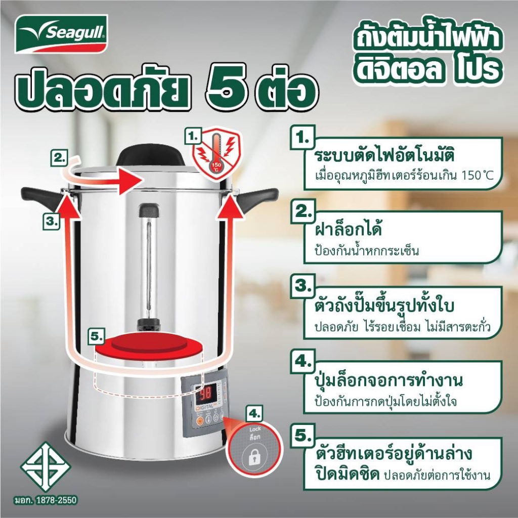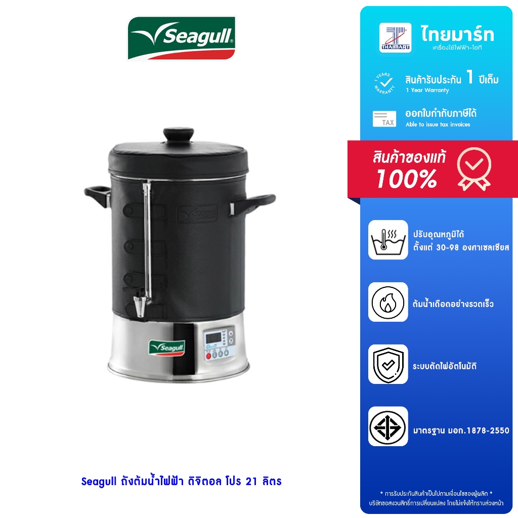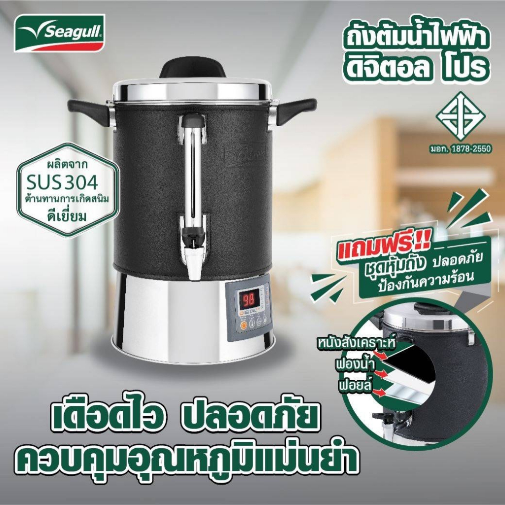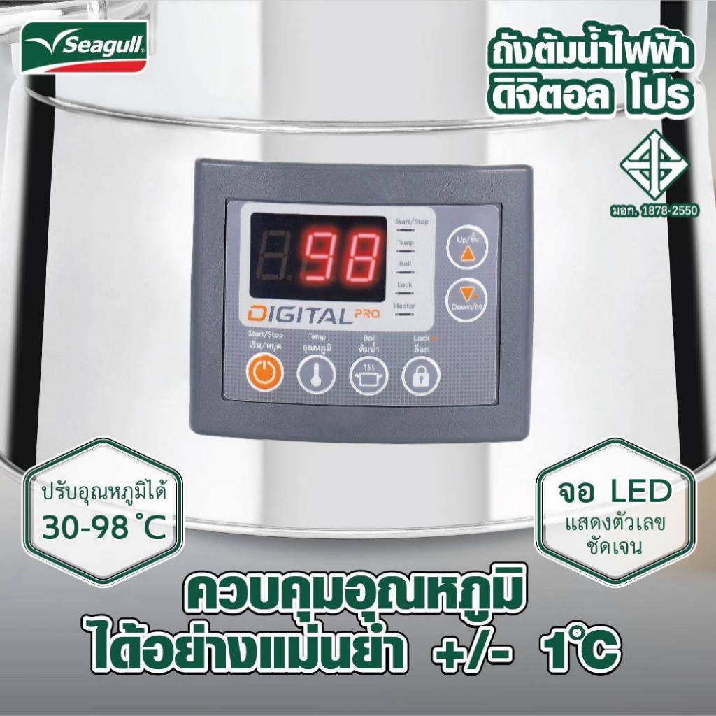 Seagull ถังต้มน้ำไฟฟ้า ถังต้มน้ำร้อน ดิจิตอล 21 ลิตร Digital Pro ตรานกนางนวล 21L