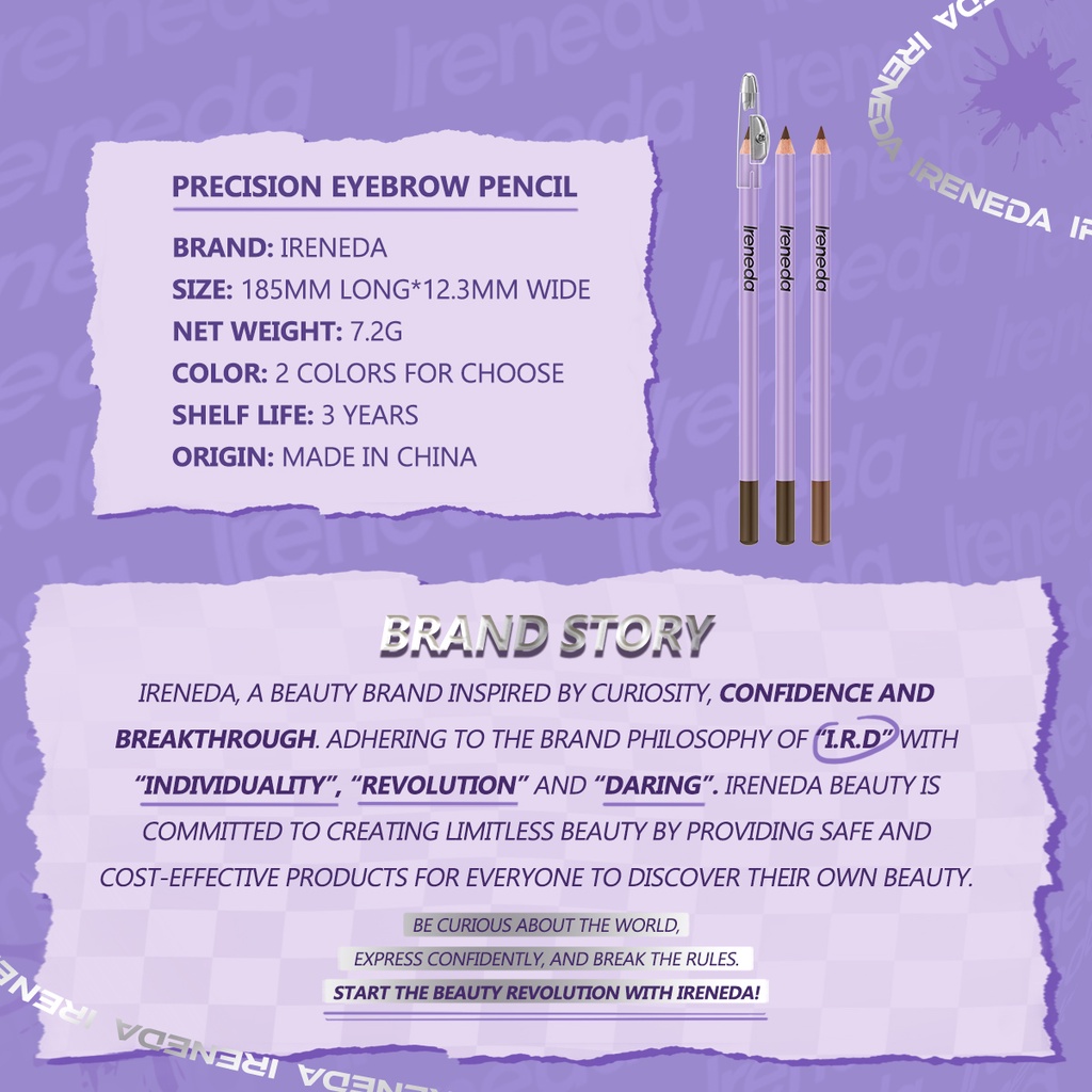 Ireneda #Bastay 2 In 1 ดินสอเขียนคิ้ว เรียบเนียน เป็นธรรมชาติ พร้อมกบเหลา