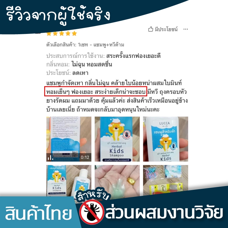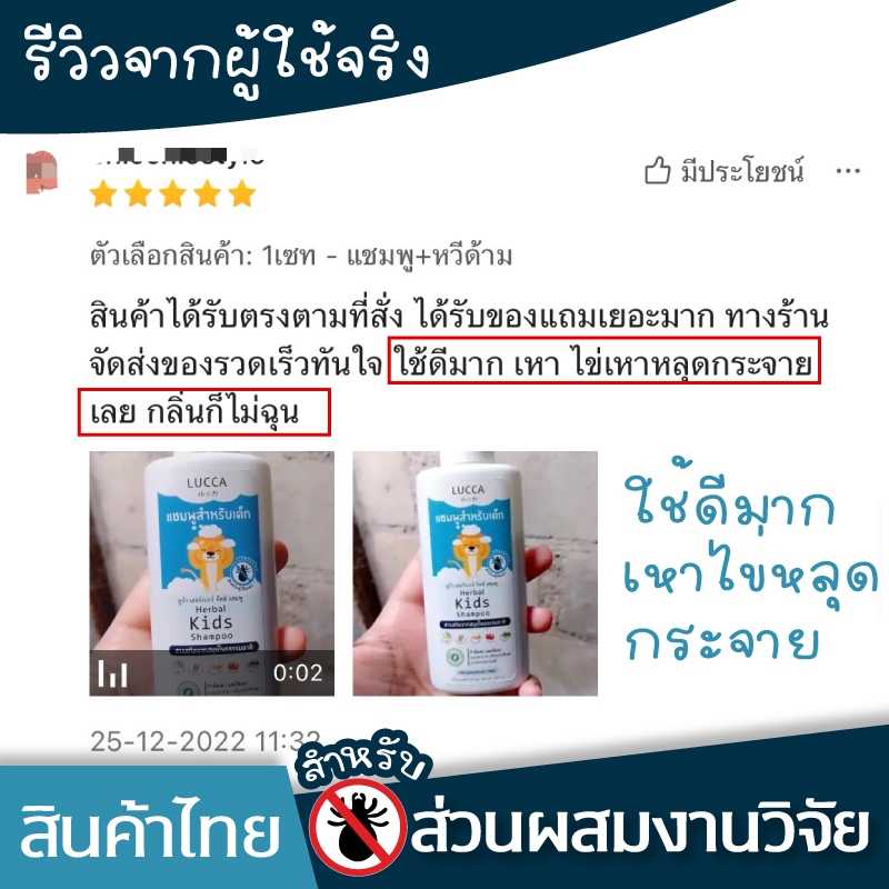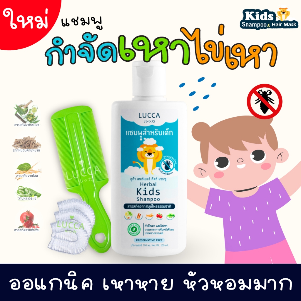 แชมพูกำจัดเหา ลูก้า หอมมาก สมุนไพรออแกนิค แม่เหา ไข่เหา LUCCA Herbal Anti-Lice Shampoo (for Kids)