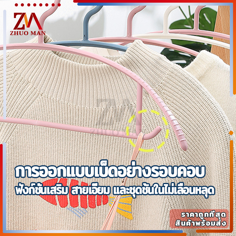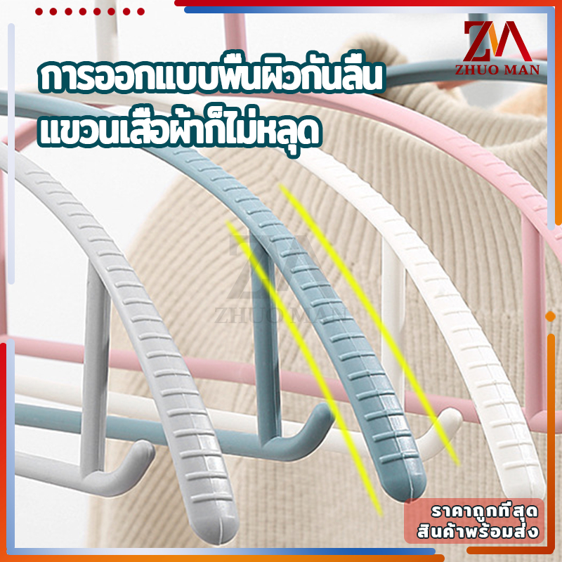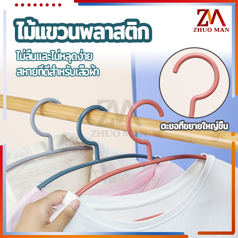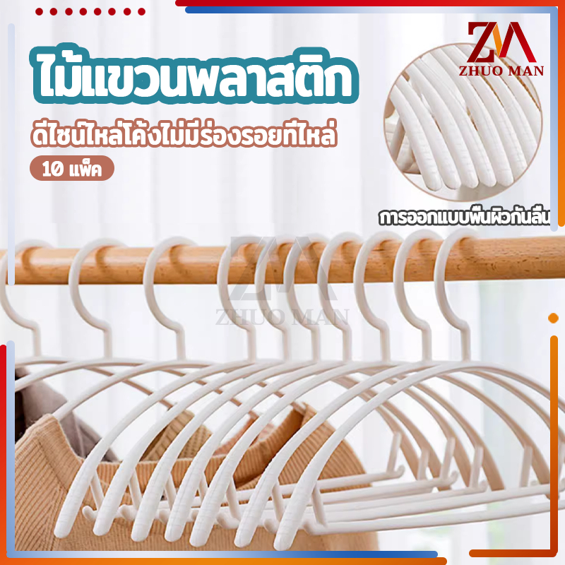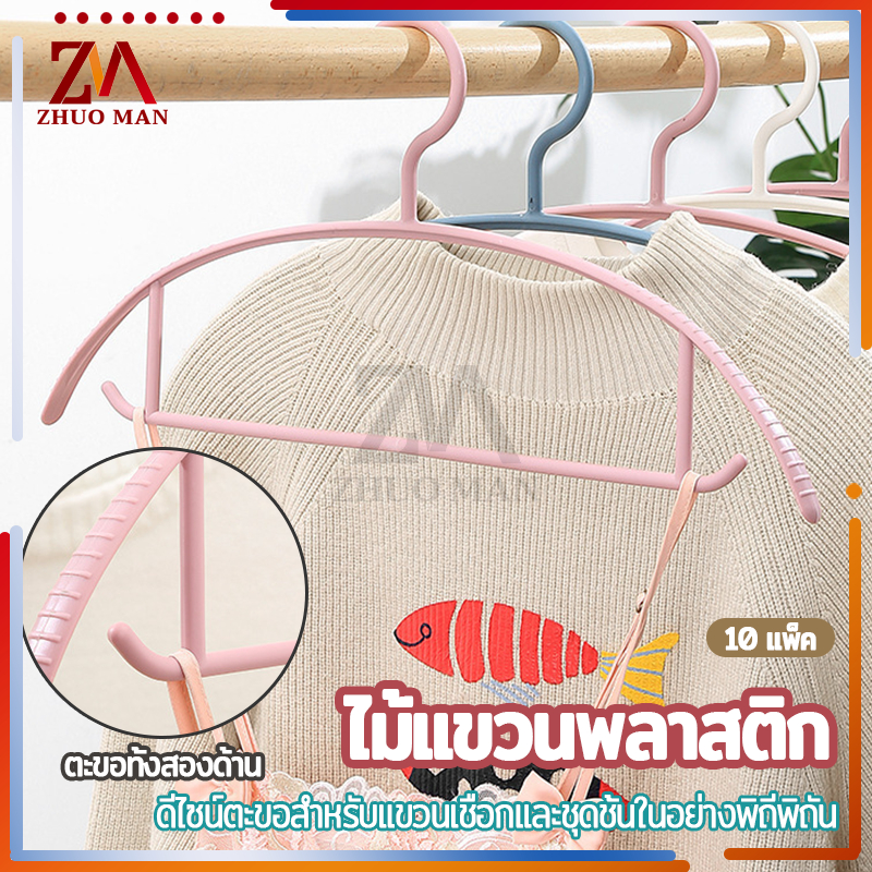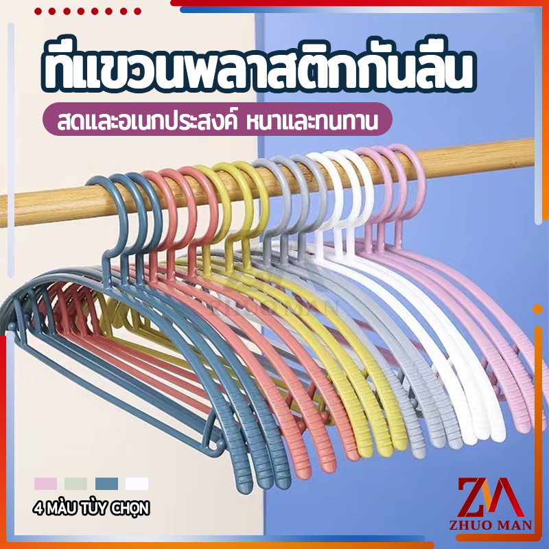 ไม้แขวนเสื้อพลาสติก(10ชิ้น)/ไม้แขวนเสื้อ/ชั้นวางชุดชั้นใน พลาสติก หนา ทนทาน รุ่นกันลื่น สีพาทเทล 4 สี
