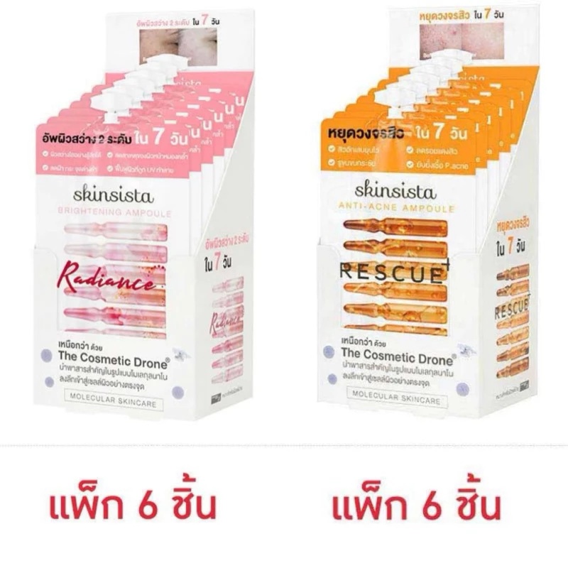 (กล่อง 6 ซอง) Skinsista สกินซิสต้า แอมพูล มี 2 สูตร เร่งผิวสว่าง/เคลียร์สิว (ปริมาณ 5 ml.)