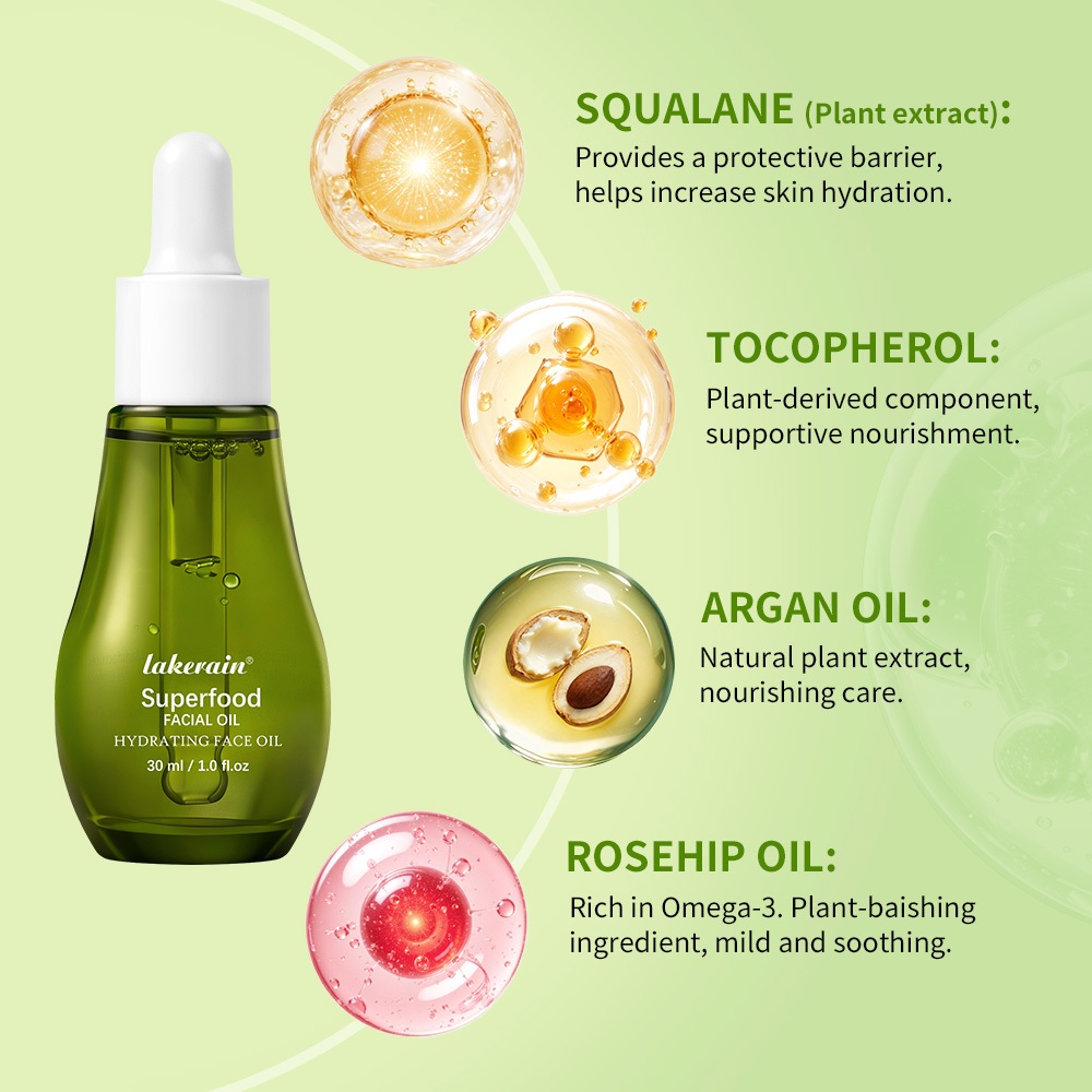 ทะเลสาบเรน ซุปเปอร์ฟู้ด เฟเชียล ออยล์ 30มล | น้ําหนักเบา ไม่เหนียวเหนอะหนะ & Hydrating สําหรับทุกสภาพผิว | เซรั่มบํารุงต้านอนุมูลอิสระเพื่อความกระจ่างใสและให้ความชุ่มชื้น