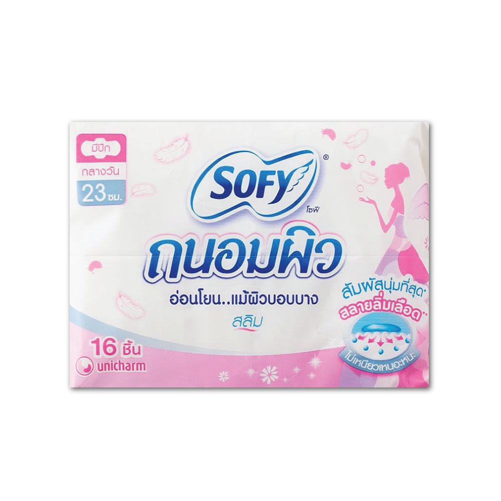 Sofy Tanompew Sanitary Slim Wing 23cm. 16pcs. โซฟีถนอมผิวผ้าอนามัยสลิมมีปีก 23ซม. 16ชิ้น