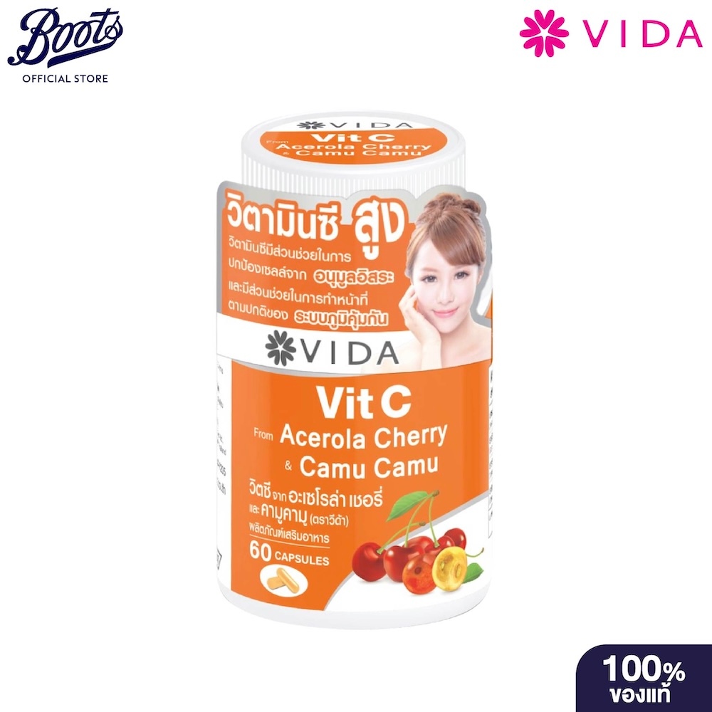 Vida Vitc Acerola Cherry & Camu Camu 60 Capsule วีด้า วิตซี อะเซโรล่า เชอรี่ และ คามูคามู 60 แคปซูล
