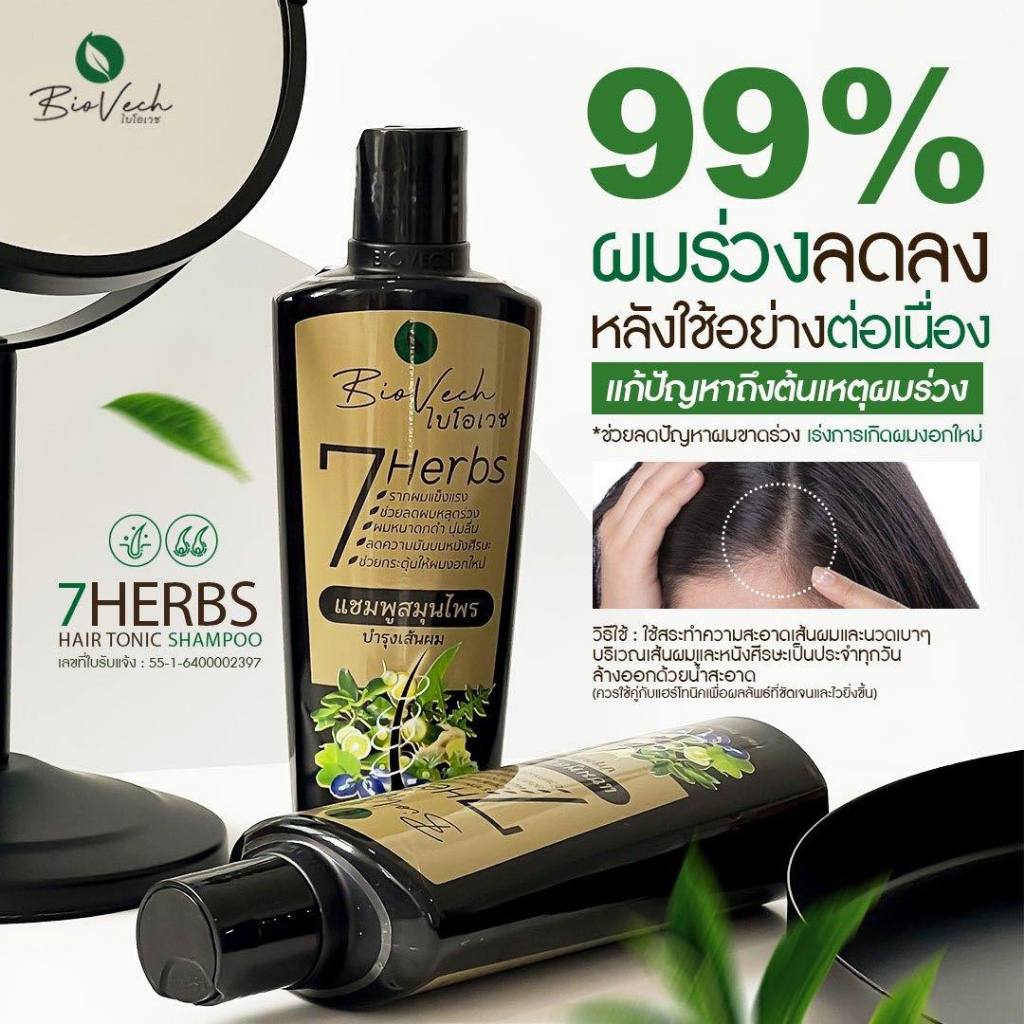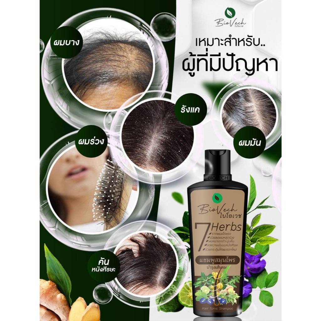 Biovech 7 Herbal Shampoo 225ml / Conditioner 225ml / Hair Tonic 100ml ไบโอเวช สมุนไพร ออแกนิก