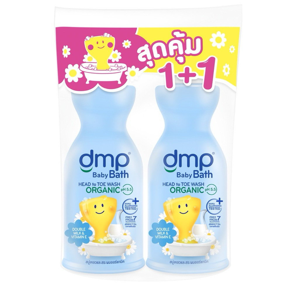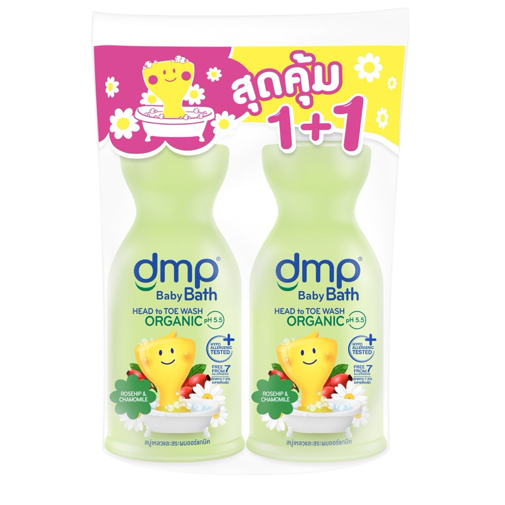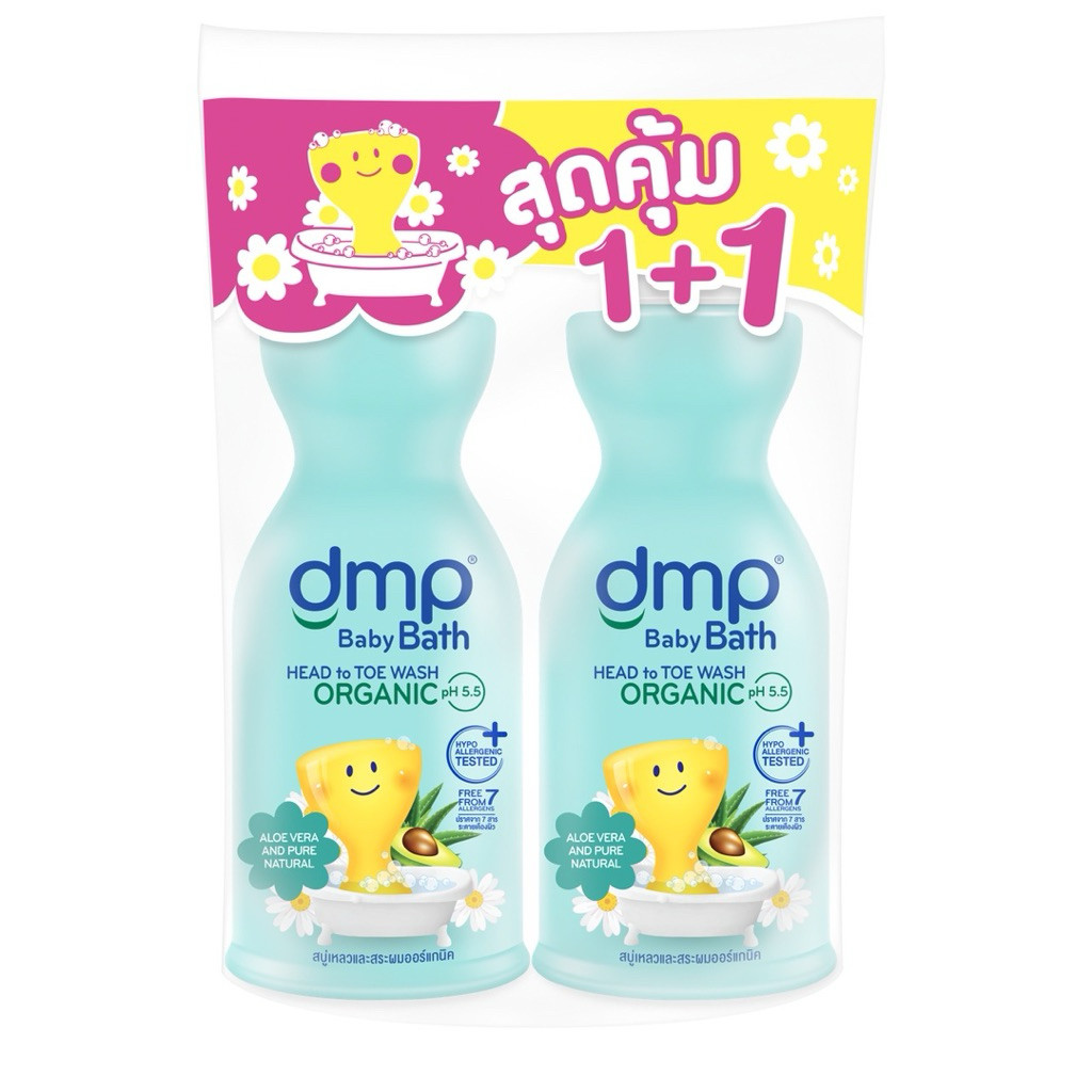 1แถม1!!!DMP ดีเอ็มพี เบบี้ บาธ สบู่เหลวและยาสระผม ออร์แกนิค พรีไบโอติก ขนาด 450 มล. แพ็ค 2 ขวด