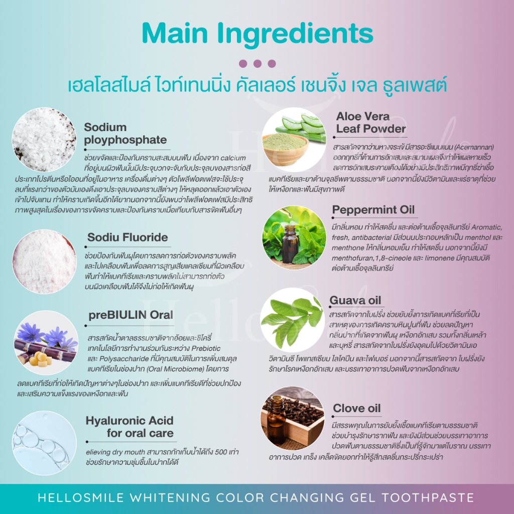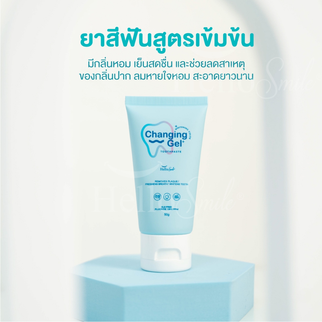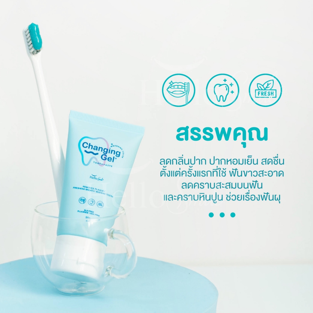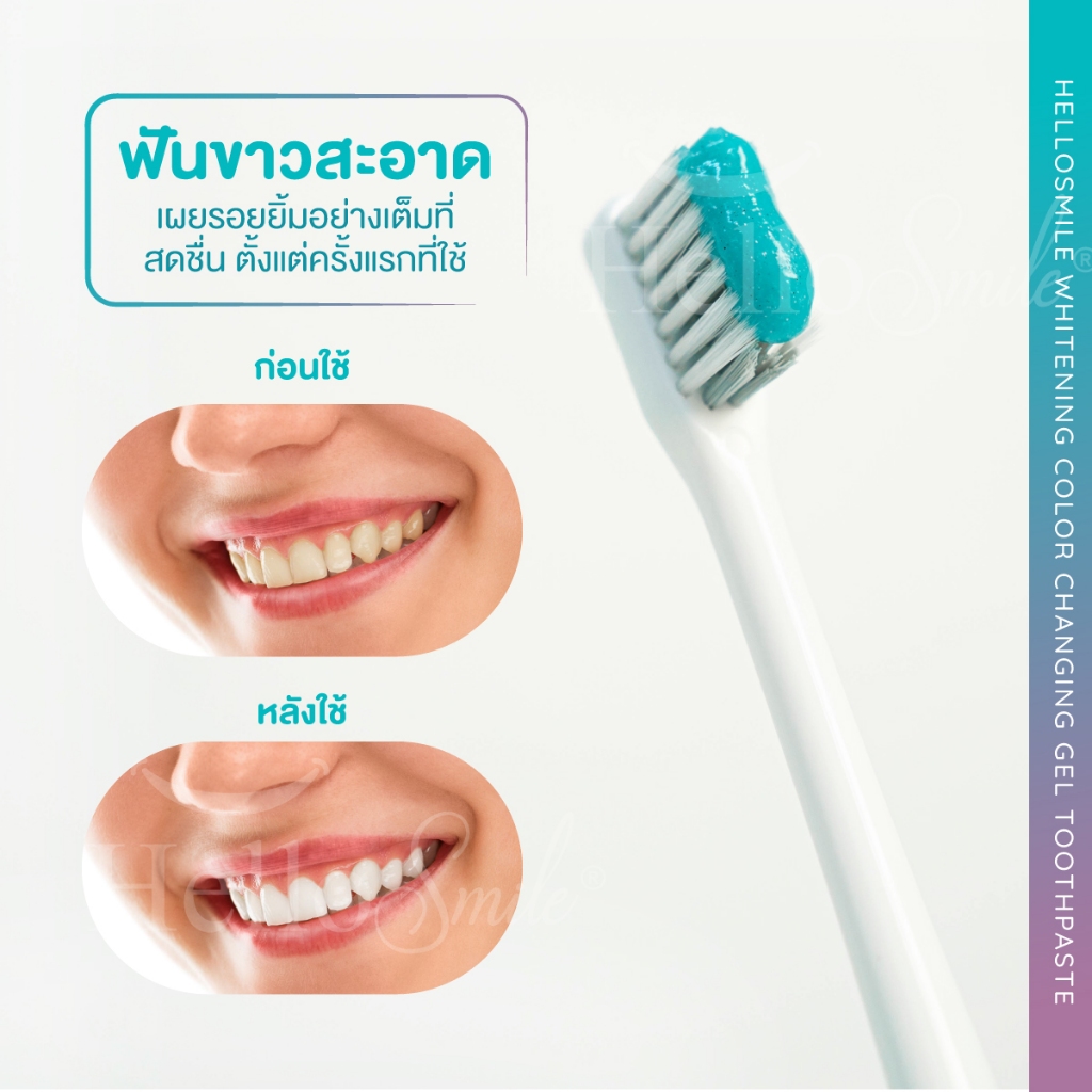 Hellosmile Changing Gel Toothpaste ยาสีฟัน เปลี่ยนสี ยาสีฟันขาว คราบเหลือง หินปูน ลดกลิ่นปาก หอมสดชื่น