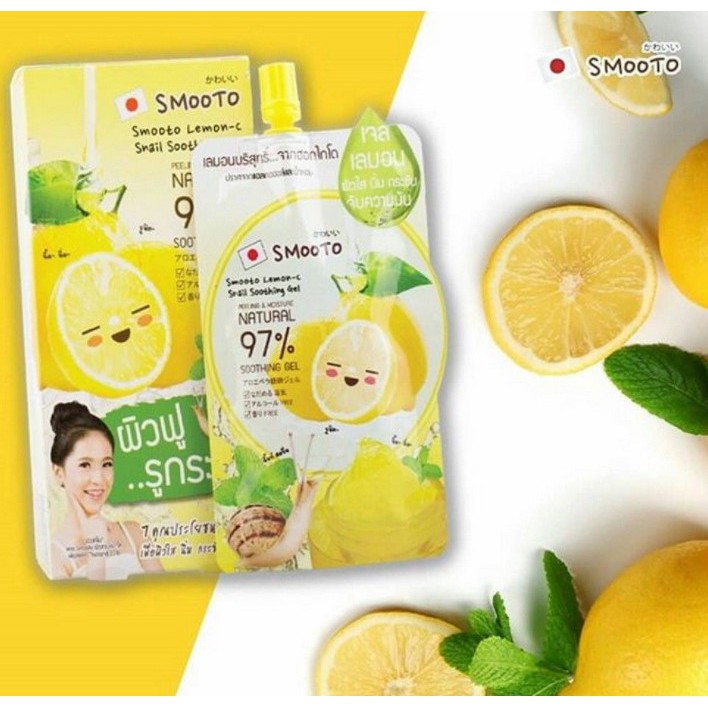 (6ซอง/กล่อง) สมูทโตะ เลมอน ซี สเนล ซูทติ้ง เจล Smooto Lemon-C Snail Soothing Gel 97% [4939]