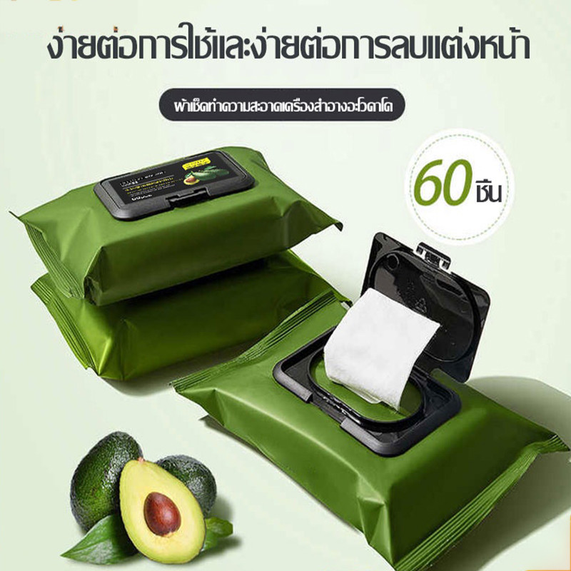 YTL QIANHUI ทิชชู่เปียกเช็ดหน้า กลิ่นอโวคาโด้ ทิชชู่เช็ดเครื่องสำอาง เ ช็ดทำความสะอาด แต่งหน้า 60 แผ่น