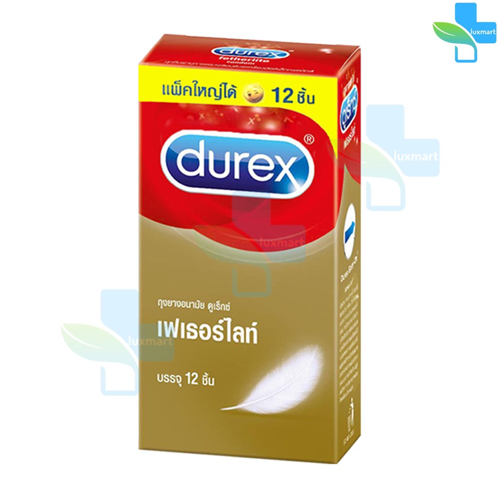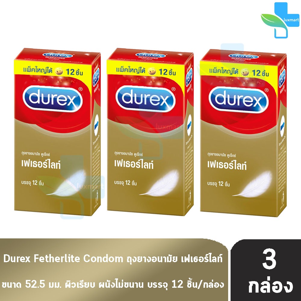 Durex Fetherlite ถุงยางอนามัย ดูเร็กซ์ เฟเธอร์ไลท์ ถุงยาง รุ่นบาง ขนาด 52.5 มม. บรรจุ 12 ชิ้น [3 กล่อง] JJ 6303 condom