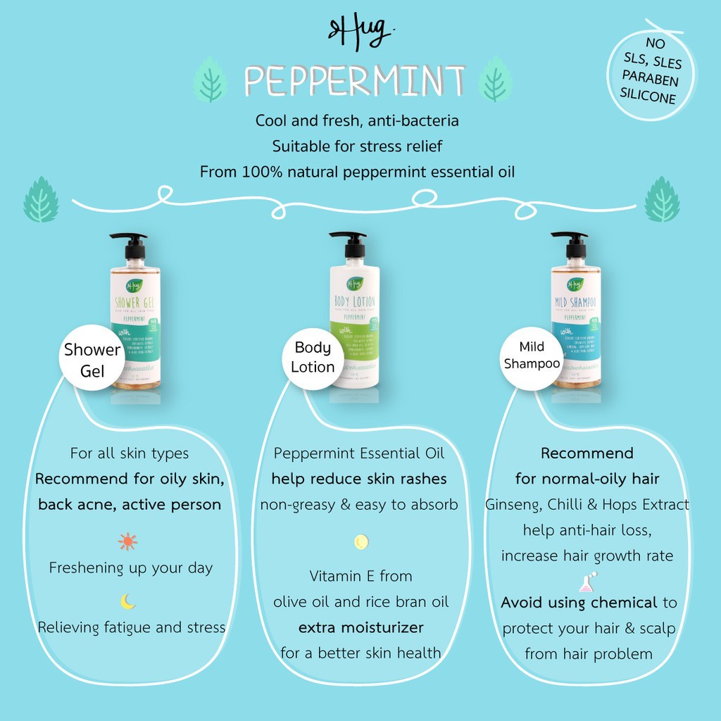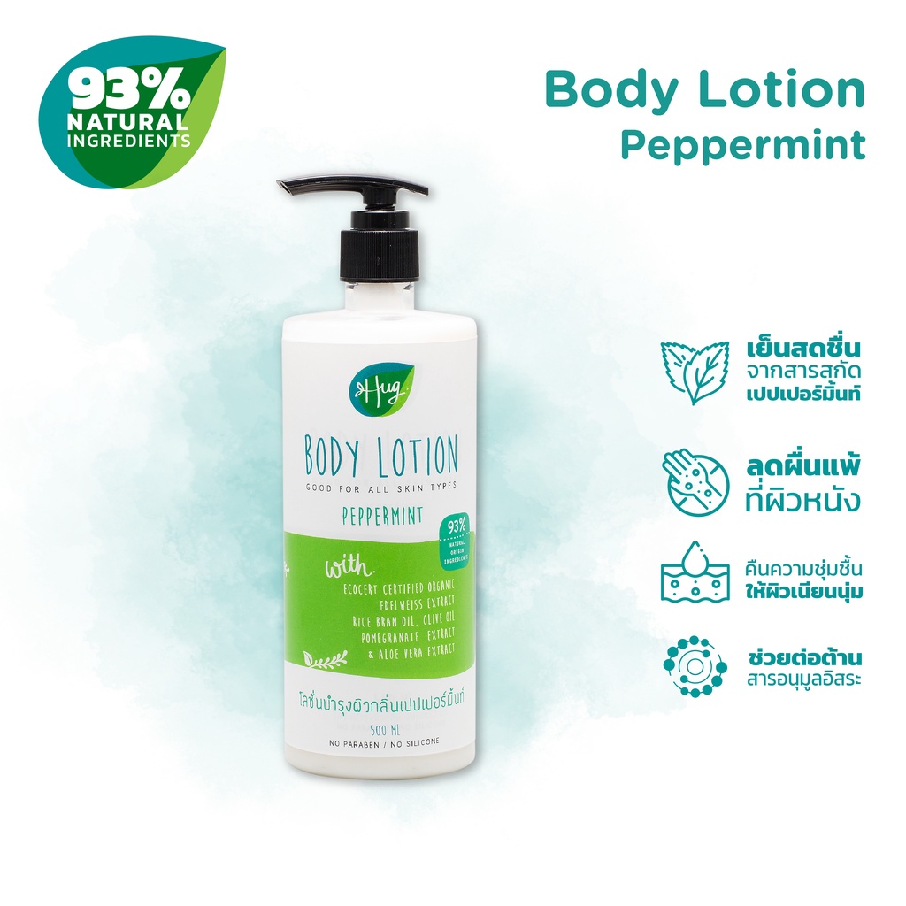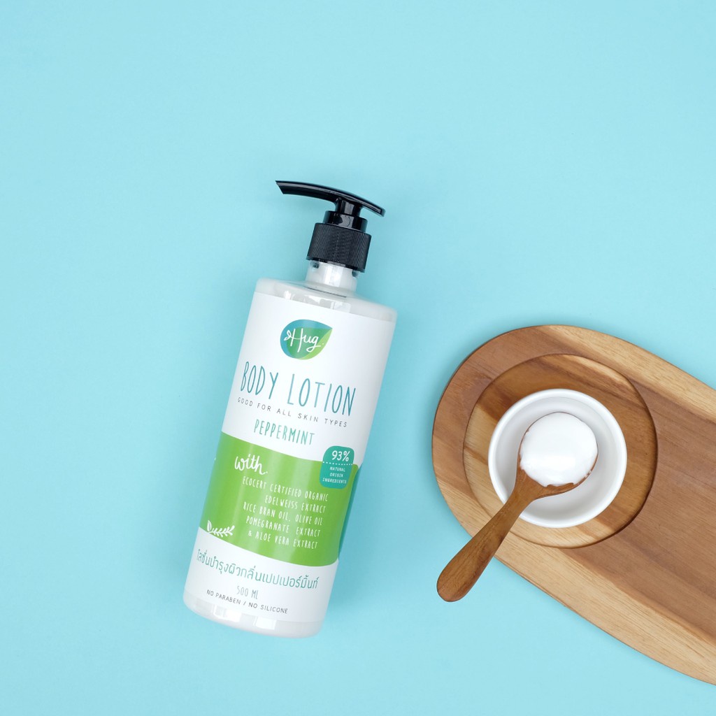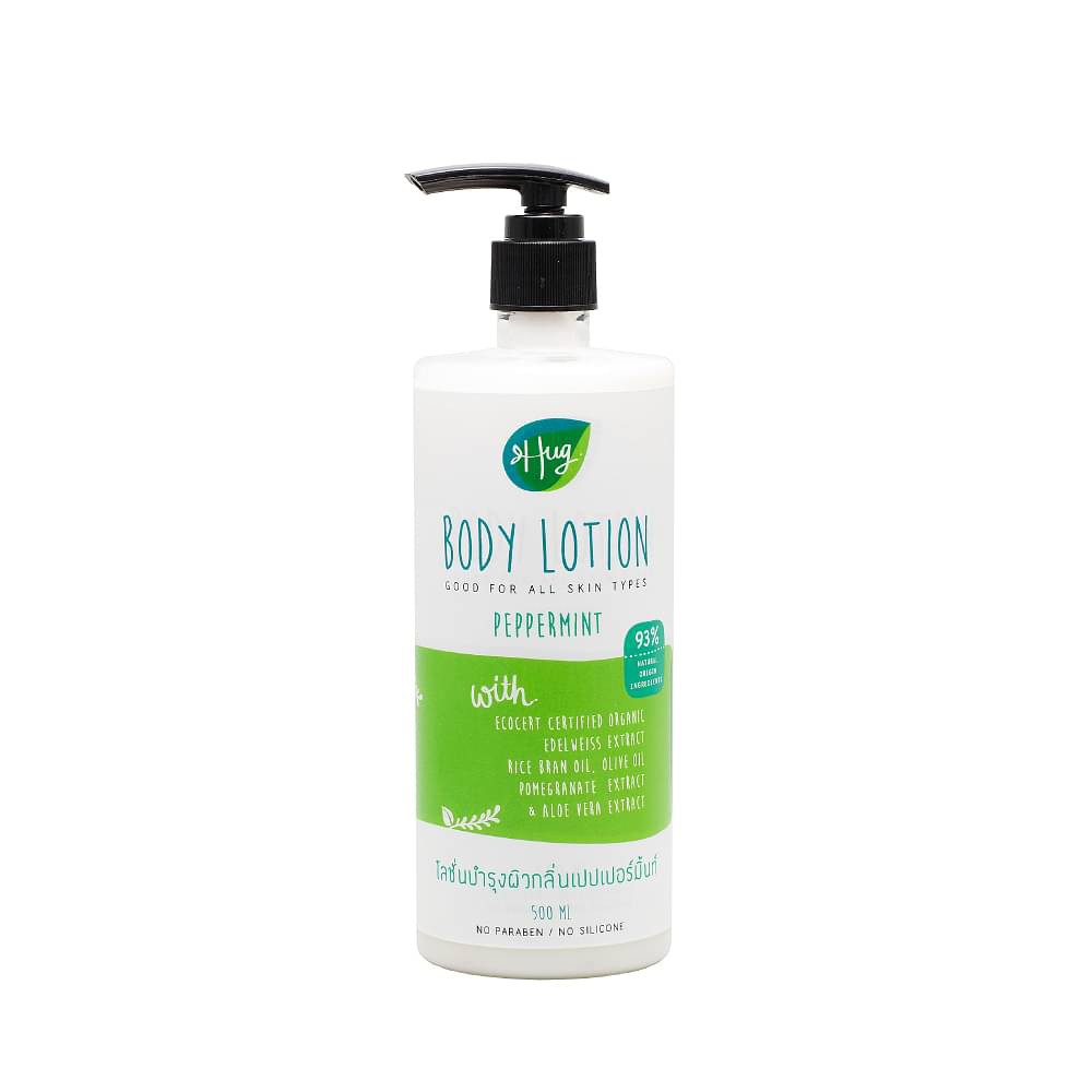 Hug ฮัก โลชั่นบำรุงผิว ออร์แกรนิค กลิ่นเปปเปอร์มิ้นท์ Body Lotion peppermint (500ml)