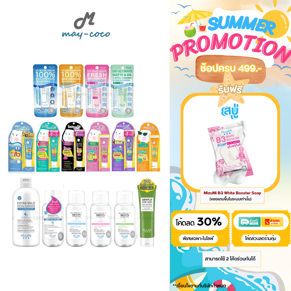 ถูก/แท้/มีไลฟ์ MizuMi มิซึมิ กันแดด เจลแต้มสิว ลดรอย เจลล้างหน้า UV Water Serum Gentle Acne Wash Extra Mild