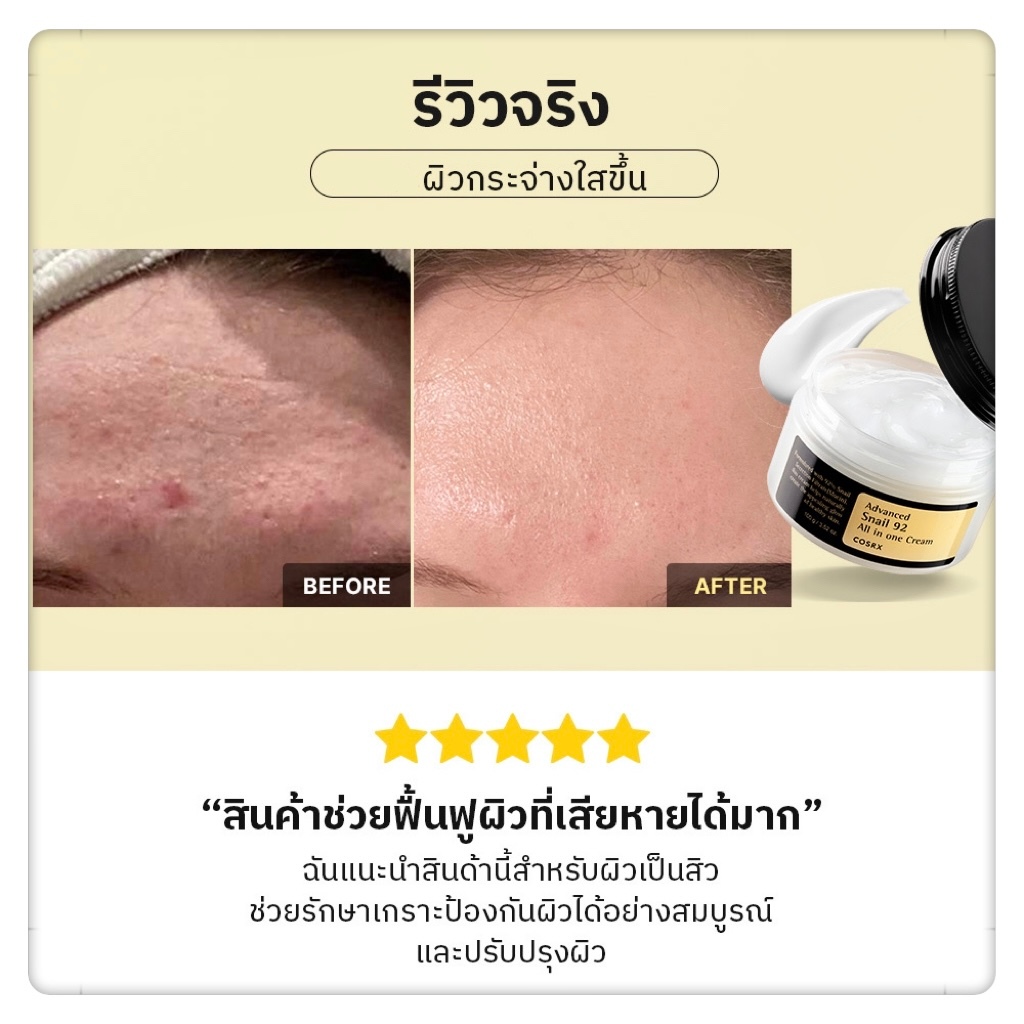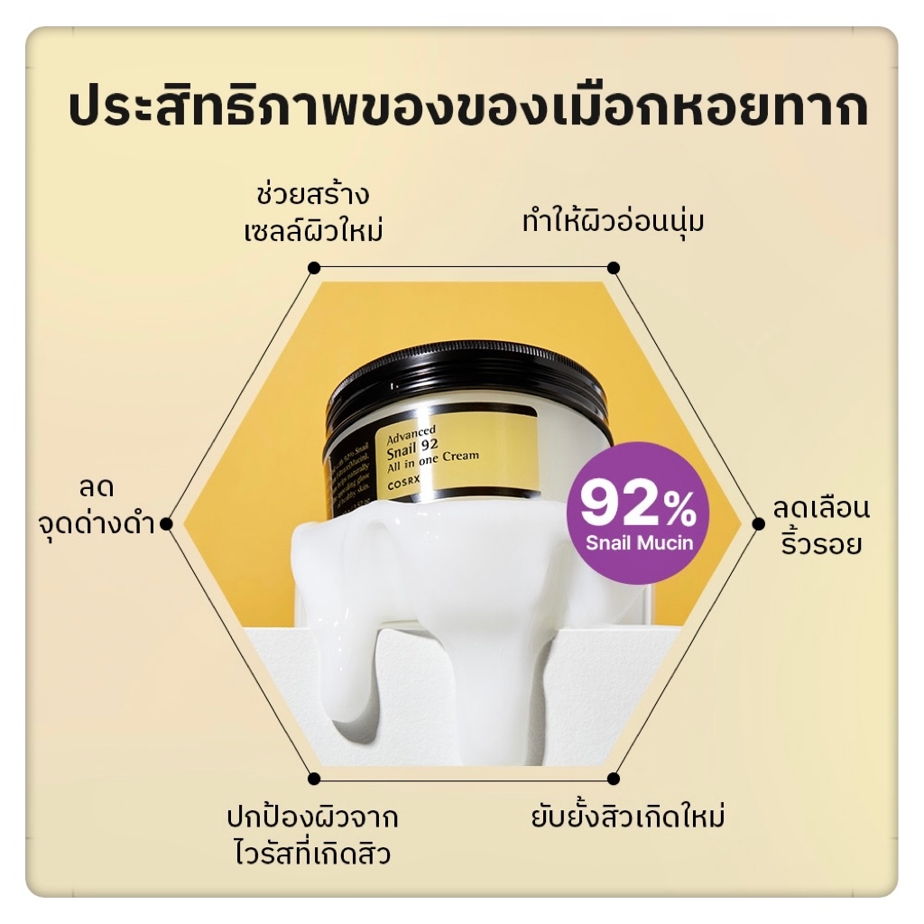 พร้อมส่งCOSRX Advance Snail 92 All in one Cream ขนาด100ml.ครีมบำรุงผิวหน้า สกัดจากเมือกหอยทาก 92% ให้ความชุ่มชื้น ซึมไว
