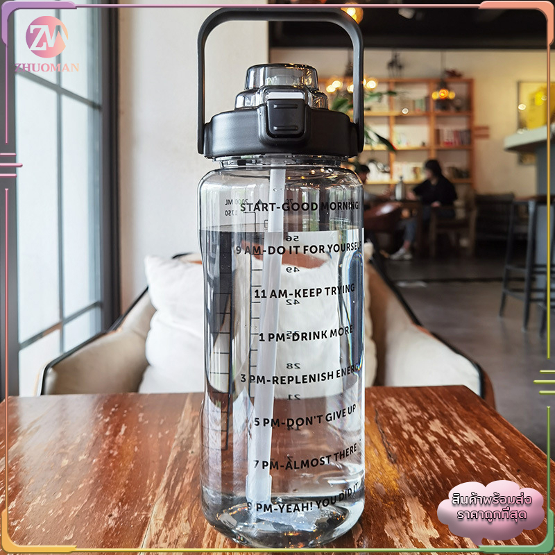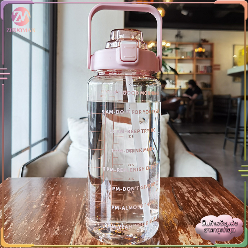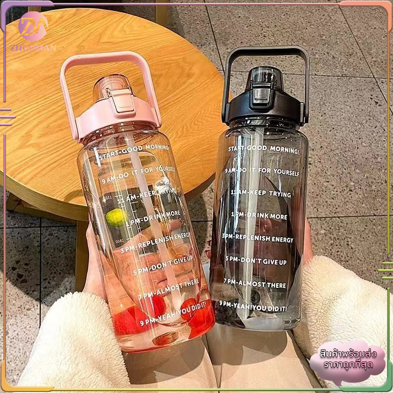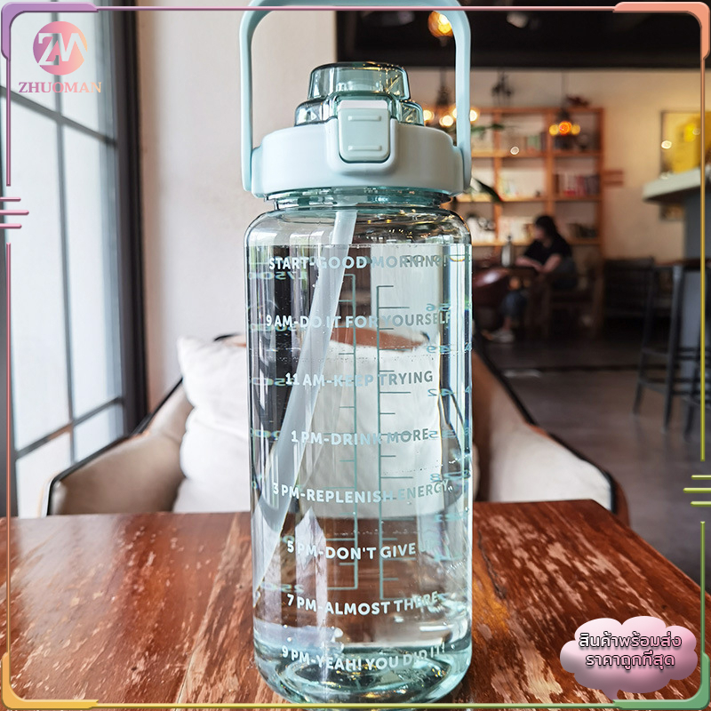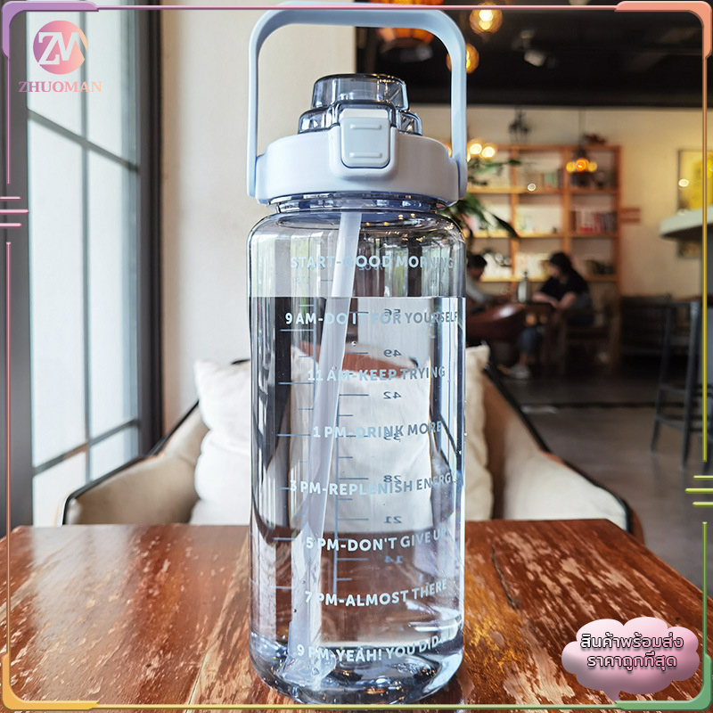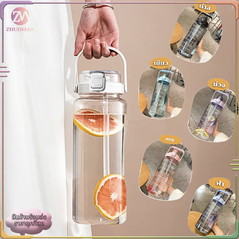 ขวดน้ํา 2 ลิตร ขวดน้ําพกพา กระบอกน้ํา กระติกน้ำ พร้อมหลอด ขวดน้ำ ปุ่มเดียวเพื่อเปิดฝาครอบ/ดื่มได้ 2 วิธี ถอดหลอดออกได้