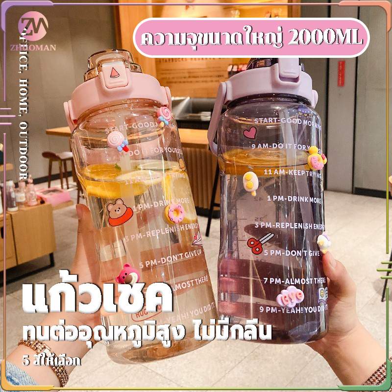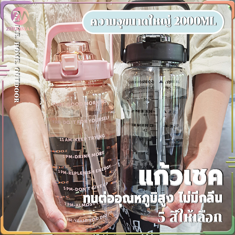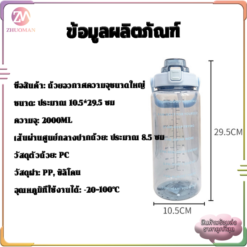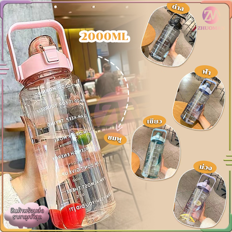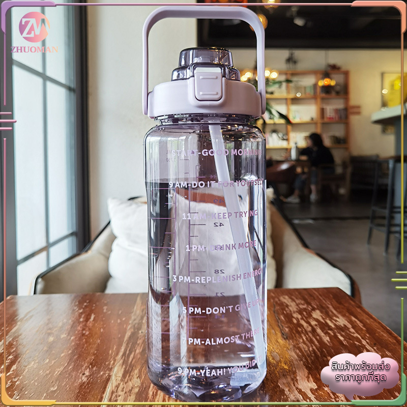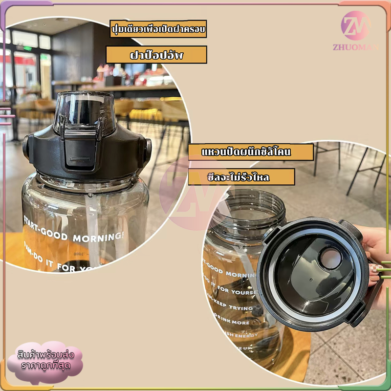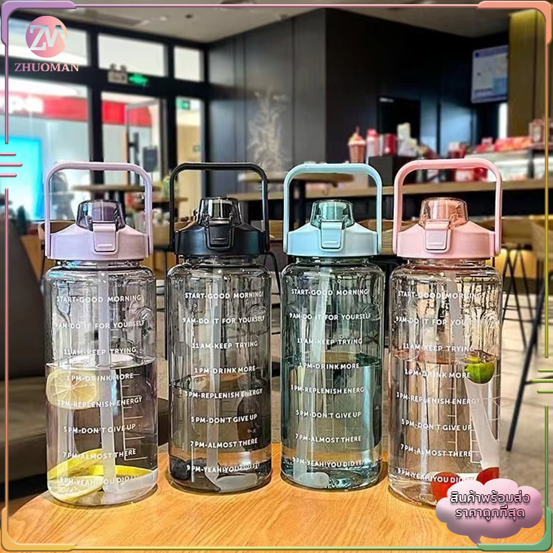 ขวดน้ํา 2 ลิตร ขวดน้ําพกพา กระบอกน้ํา กระติกน้ำ พร้อมหลอด ขวดน้ำ ปุ่มเดียวเพื่อเปิดฝาครอบ/ดื่มได้ 2 วิธี ถอดหลอดออกได้