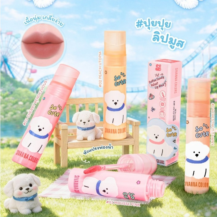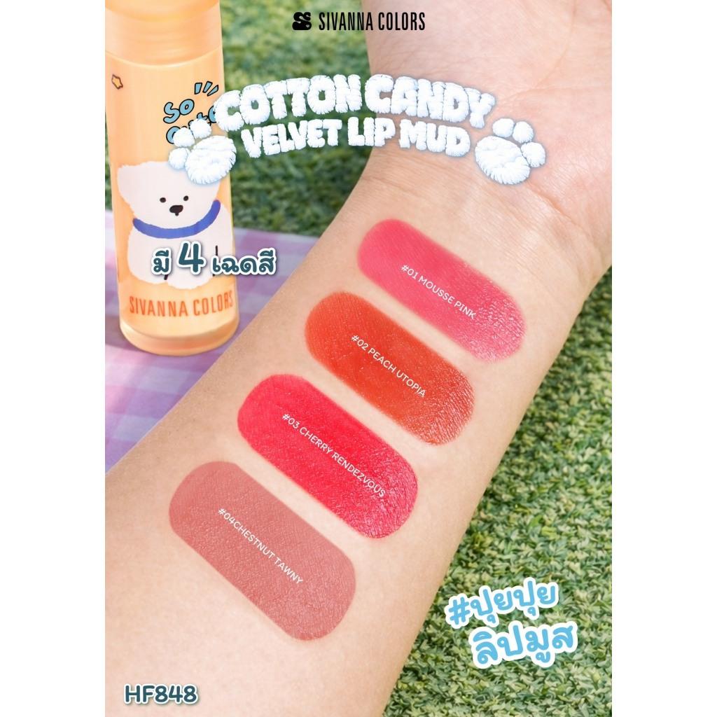 HF848 ลิปมัดปุยเมฆ คอตตอนแคนดี้ เวลเวท ลิป มัด Sivanna Colors Cotton Candy Velvet Lip Mud