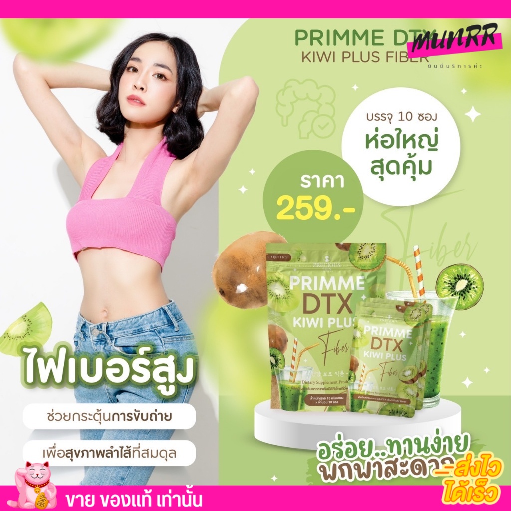 (10ซอง) ดีท๊อกซ์ PRIMME DTX Kiwi Plus พริมมี ดีทีเอ็กซ์ กีวี ไฟเบอร์ กระตุ้นการขับถ่าย พุงยุบ by โจจิ Joji
