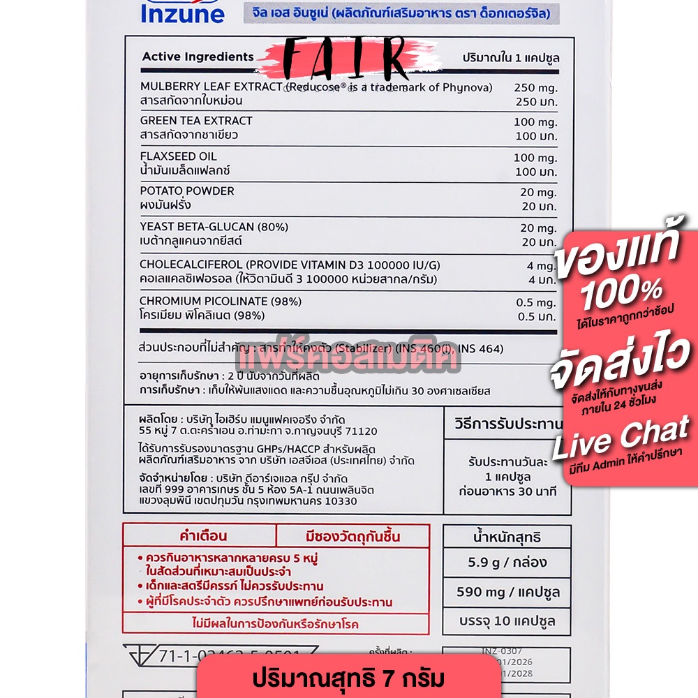 Dr.JiLL Jil S Inzune ด็อกเตอร์จิล จิล เอส อินซูเน่ [10 แคปซูล] วันละ 1 แคปซูล ก่อนมื้ออาหาร 30 นาที
