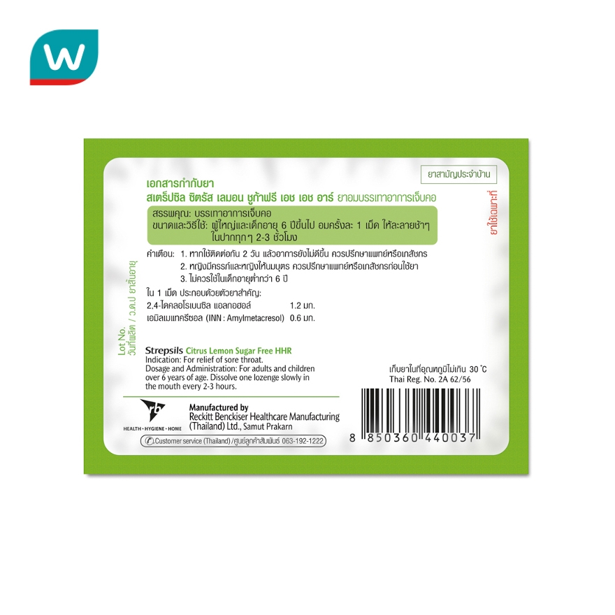 Strepsils สเตร็ปซิล ซิตรัส รสเลมอน ชูก้า ฟรี เอช เอช อาร์ 6 เม็ด