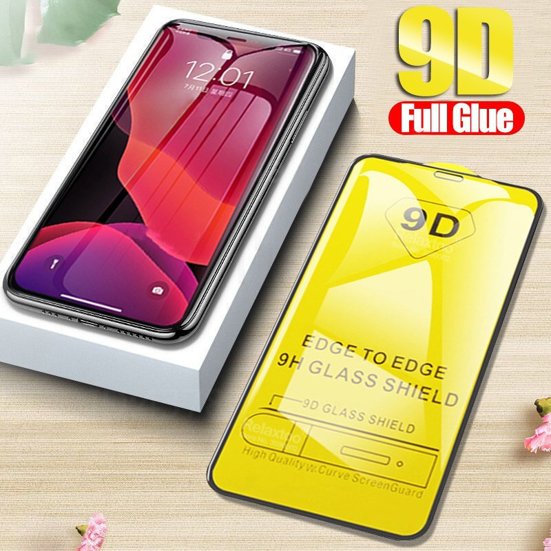 9DกระจกนิรภัยสําหรับiPhone17 16 15 14 11 13 12 16 Pro XS Max 14Plus 15Plus XR X 8 Plus 7 6 6S 13mini 12mini SE2020 กาวเต็มหน้าจอป้องกันฟิล์มพร้อมกล่องสีเหลือง