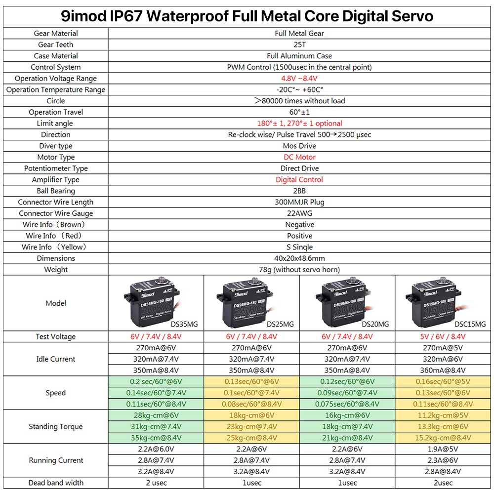 9imod Metal Gear Digital Servo Waterproof High Torque Metal Gear Arduino Digital Servo 35kg 25kg 20kg 15kg for 1/10 RC Auto